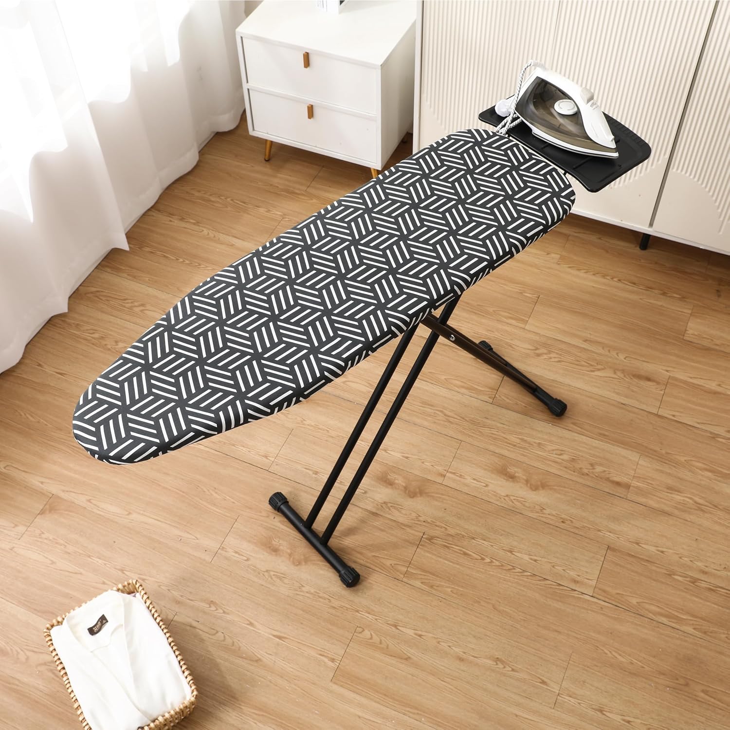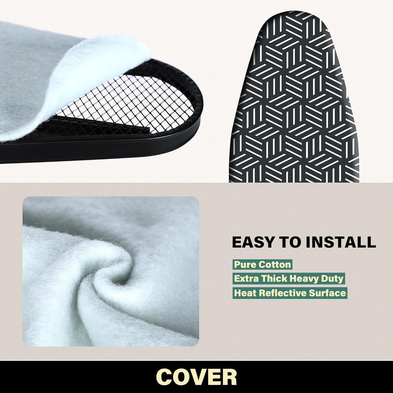 - Ironing Board Cover: Made of ultra-thick pure cotton material of protective materials, featuring an innovative heat-reflective function that doesn't absorb heat but reflects it instead. This creates an ideal ironing surface, allowing the iron to glide smoothly over garments. Experience wrinkle-free ironing in no time, reducing ironing time significantly.