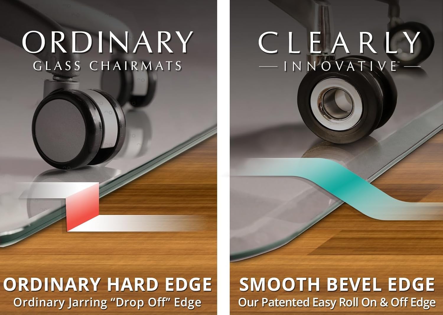 - π£π₯ππ ππ¨π πππππ₯ π ππ§ - Clearly Innovative set out to create the best ΒΌβ thick tempered glass chair mats on the market and have done so with their exclusive patented beveled-edge design that provides a smooth transition from our premium glass mat to carpet or hard floors and is matched by no other manufacturer.
