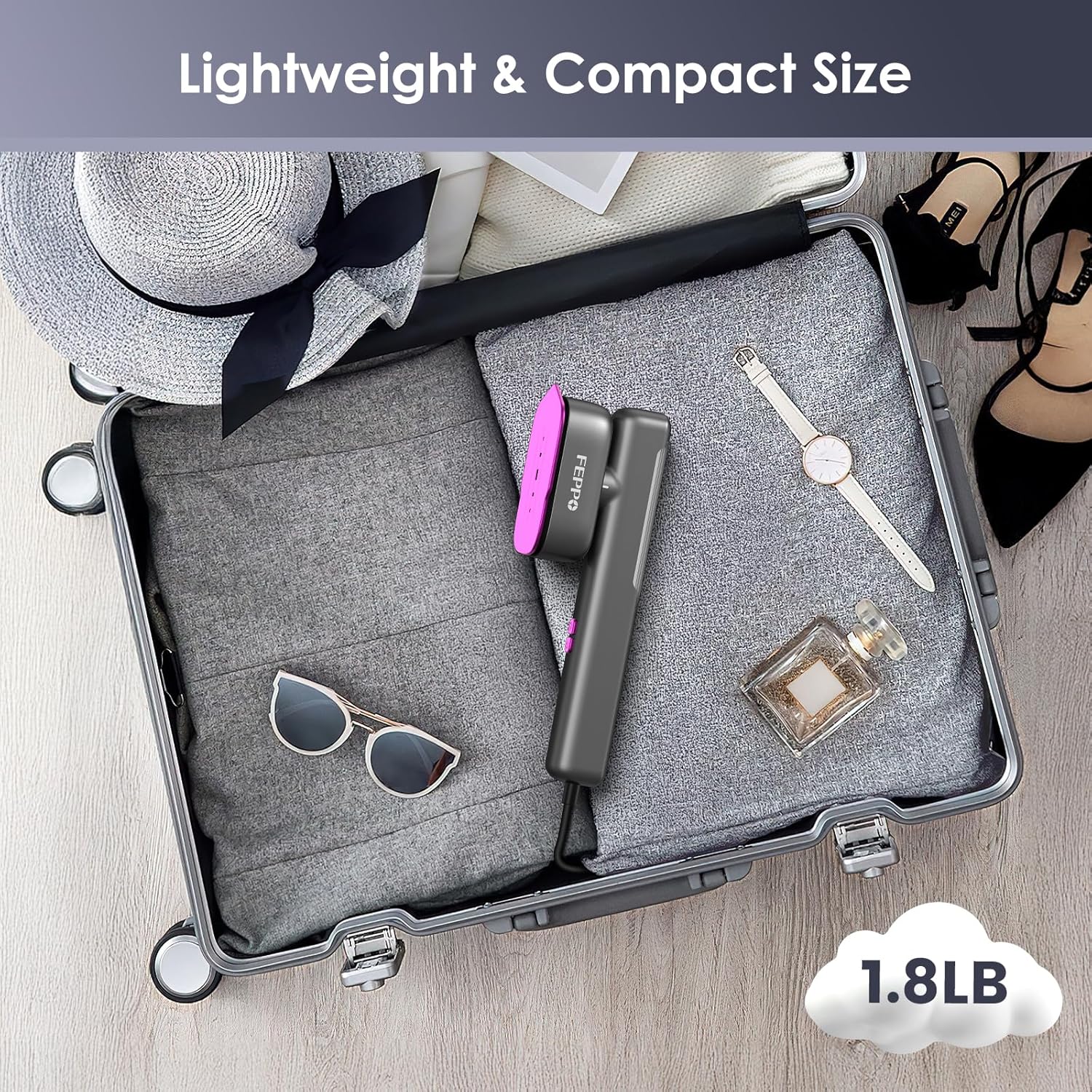 FEPPO Travel Steamer for Clothes, 110-240V Dual Voltage Portable Steamer & Iron 2 in 1, Fast Heat Up, 1100W Powerful Garment Steamer, Large Ceramic Heat Panel for Home & Global & Europe Traveling