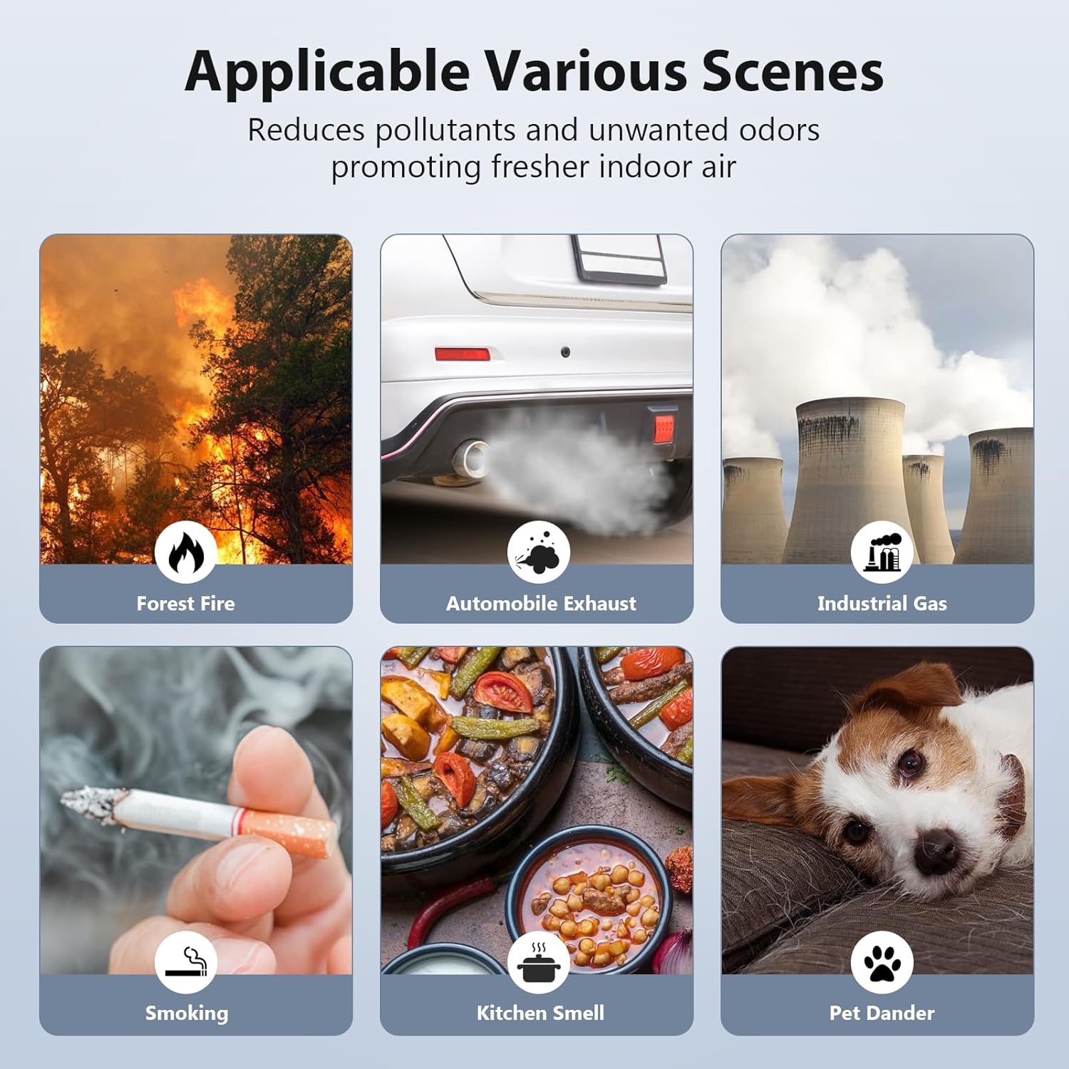 - 4-IN-1 ADVANCED FILTRATION: Mk01 air filter multi-stage defense system combines a nylon pre-filter for large particles, Reaction filter layer can react with harmful particles entering the filter and produce harmless substances, a efficiency filter, and high-density pelletized activated carbon to neutralize odors, VOCs, and formaldehyde—delivering clinic-grade air purity for your home.