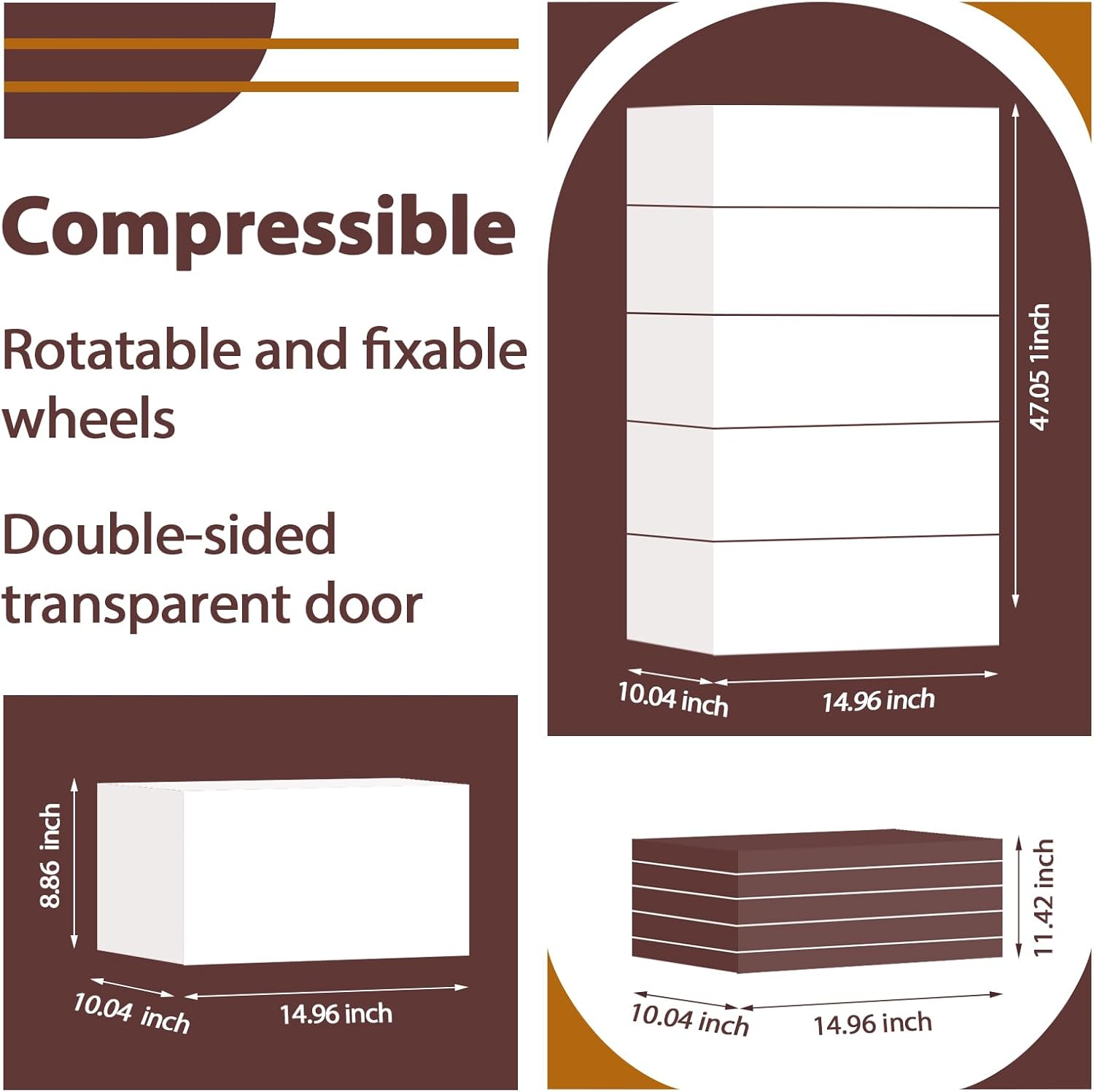 - Extra-large Plastic Storage Bins with Drawers:Each layer measures 14.96 in × 10.04 in × 8.86 in and has a capacity of approximately 23 QT. For a five-layer stack, the compressed overall size is approximately 14.96 in × 10.04 in × 47.05 in, with a total capacity of 115.22 QT