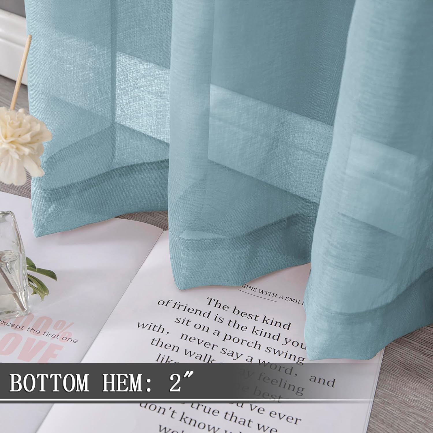 Tollpiz Sheer Curtains Living Room Linen Textured Curtain Sheers Light Filtering Voile Rod Pocket Curtains for Bedroom, 38 x 63 inches Long, Dusty Blue, Set of 2 Panels