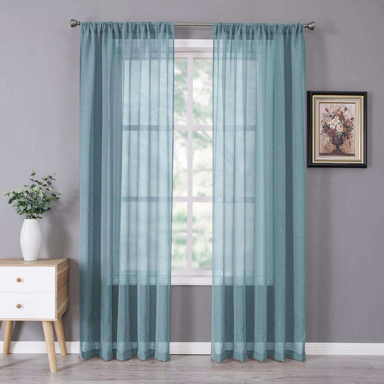Tollpiz Sheer Curtain Linen Textured Living Room Curtains Sheer Light Filtering Rod Pocket Voile Curtain for Bedroom, 54 x 72 inches Long, Dusty Blue, Set of 2 Panels