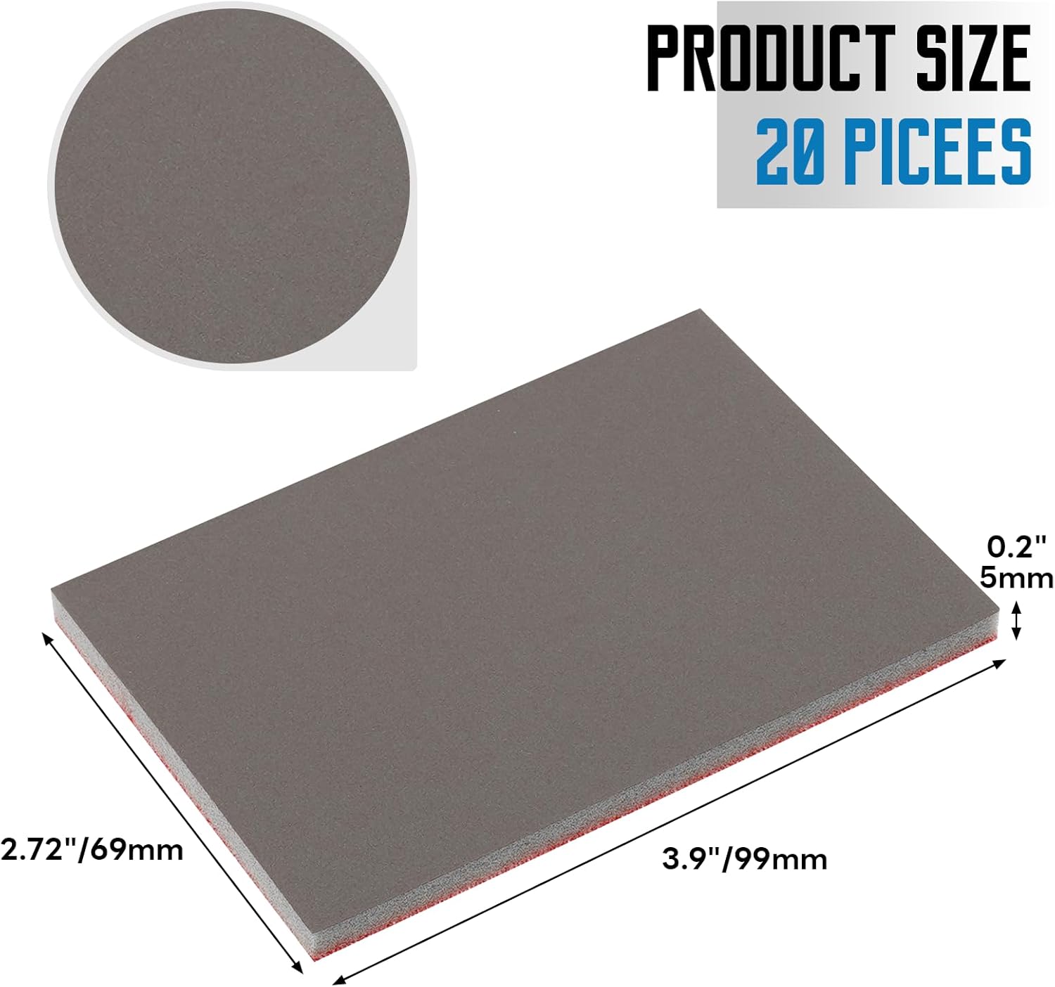 - Package Includes: 20 x 2000 grit sanding sponge, length: 3.9"/99mm, width: 2.72"/69mm, you can cut it into the desired size and shape according to your needs.
