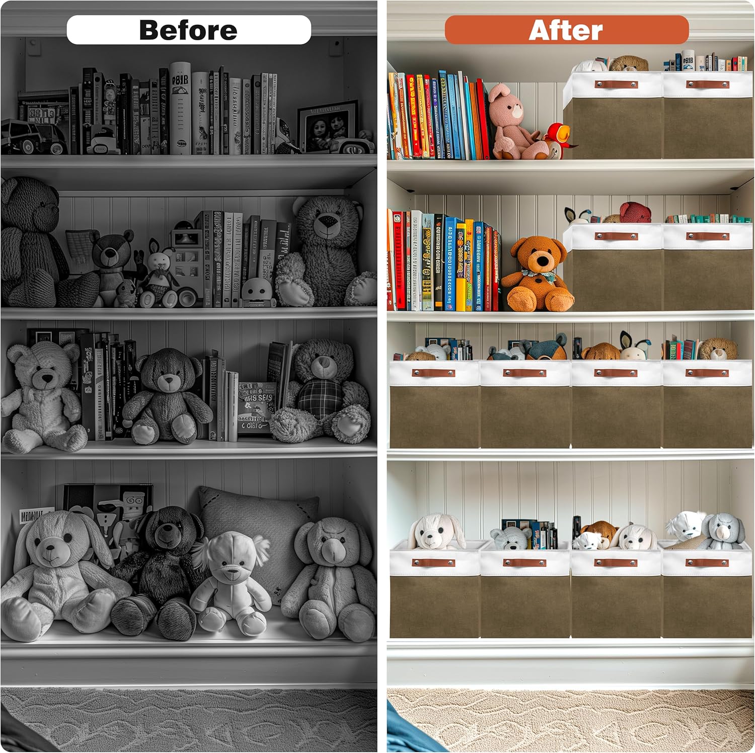 - 【MULTIPURPOSE & VERSATILE】 Our fabric storage basket measures 11*11*11 inch , perfect for organizing a wide range of items like socks, underwear, makeup, office supplies, toiletries, and more. Whether in your bedroom, bathroom, kitchen, or office, these baskets help you maximize space and maintain a tidy environment.