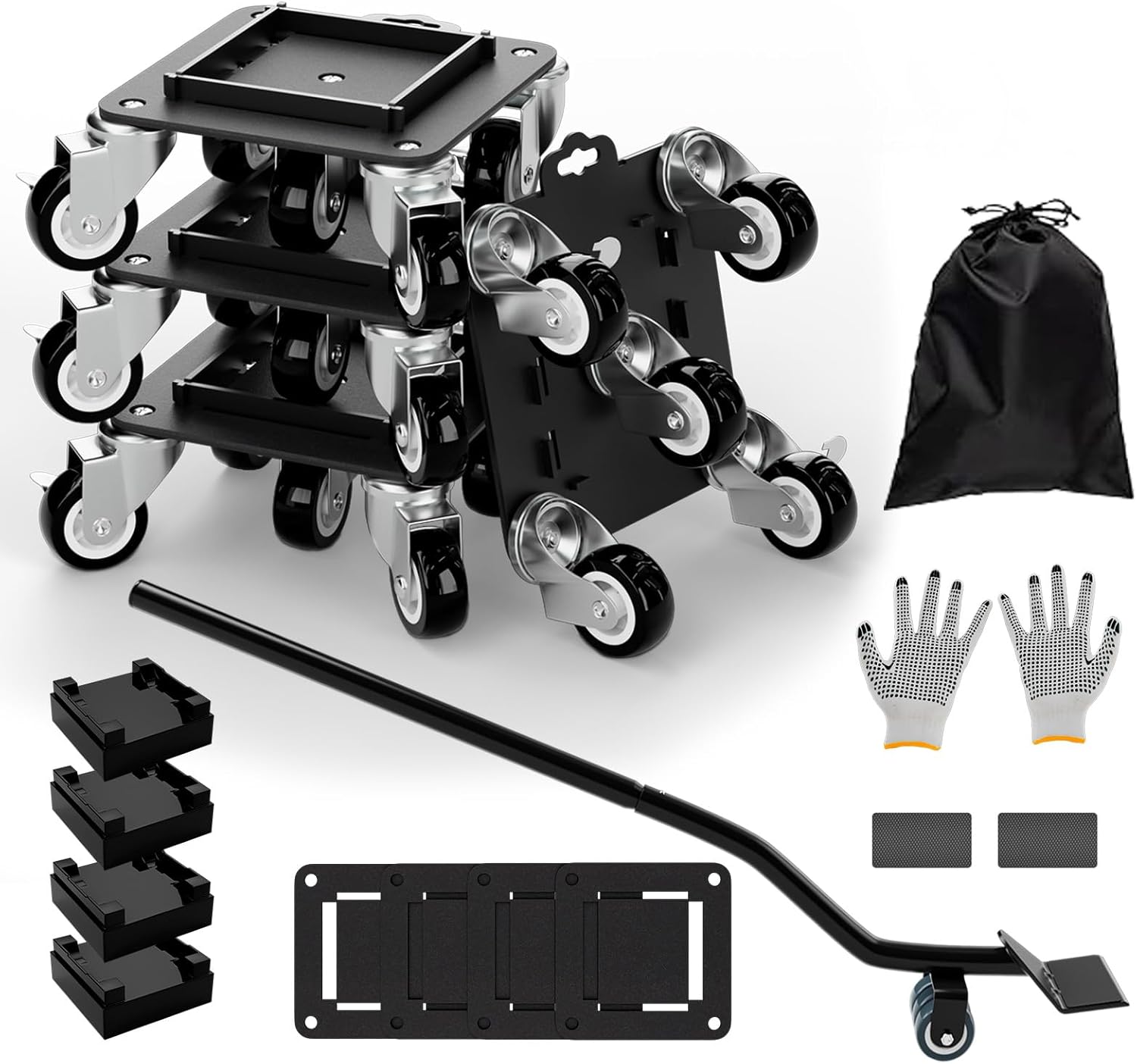 - High Load Capacity: Constructed from durable 3mm carbon steel, this furniture mover supports up to 3307 lbs static load and 3000 lbs dynamic load. The extended crowbar simplifies lifting, and the 4 height-raising pads make it easy to move heavy furniture and appliances with ease and durability.