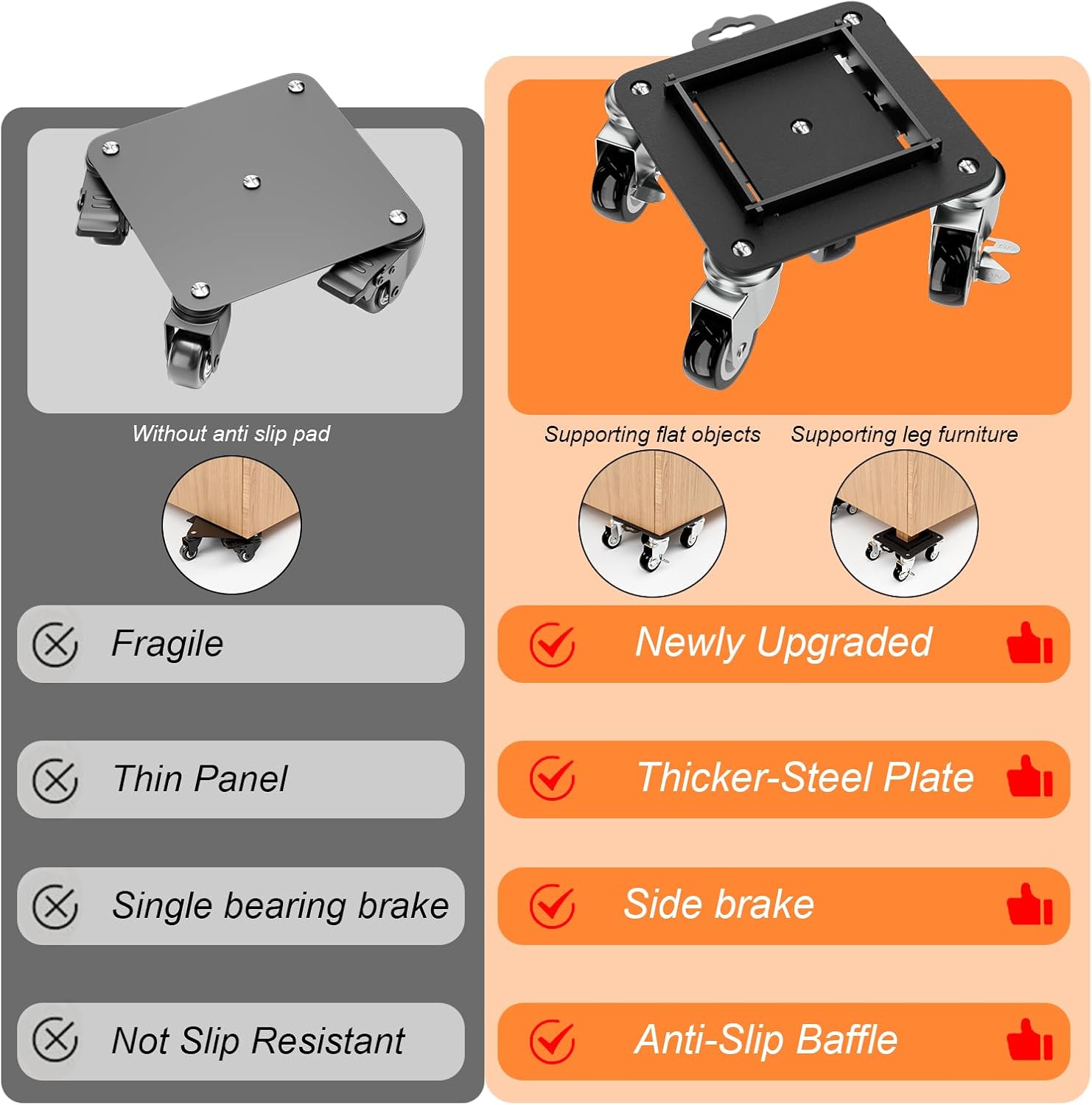 - Smooth, Flexible Movement: Equipped with five 1.97-inch single-bearing large wheels, this dolly offers smooth, flexible movement under heavy loads. The side brake system locks the wheels, providing stability and control once your furniture is in place, perfect for heavy-duty transport.