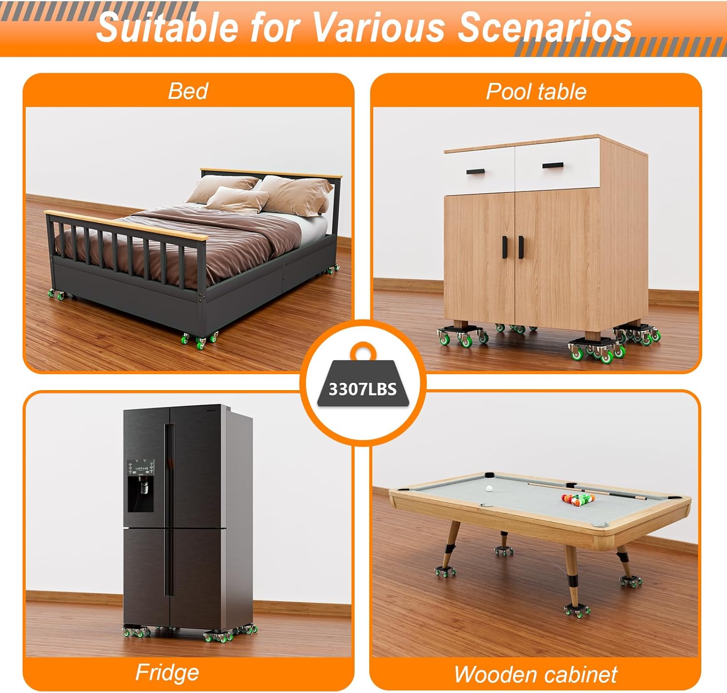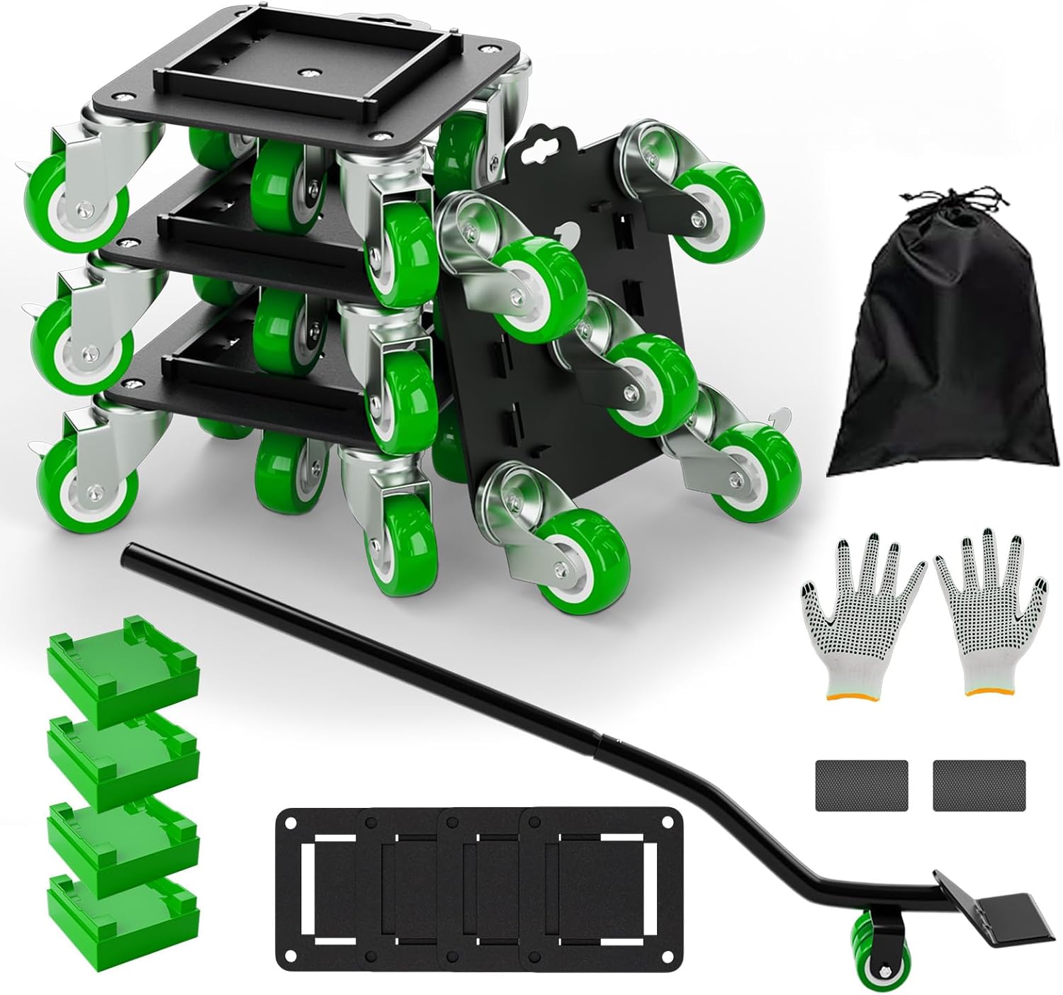 - High Load Capacity: Constructed from durable 3mm carbon steel, this furniture mover supports up to 3307 lbs static load and 3000 lbs dynamic load. The extended crowbar simplifies lifting, and the 4 height-raising pads make it easy to move heavy furniture and appliances with ease and durability.