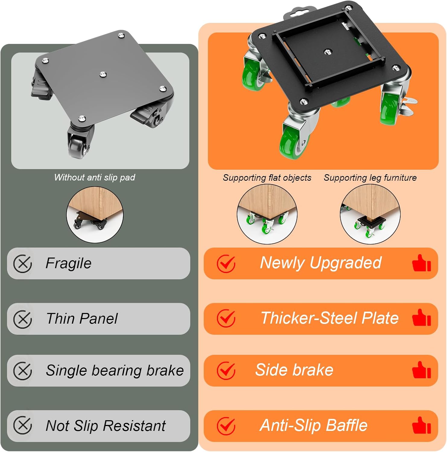 - Smooth, Flexible Movement: Equipped with five 1.97-inch single-bearing large wheels, this dolly offers smooth, flexible movement under heavy loads. The side brake system locks the wheels, providing stability and control once your furniture is in place, perfect for heavy-duty transport.