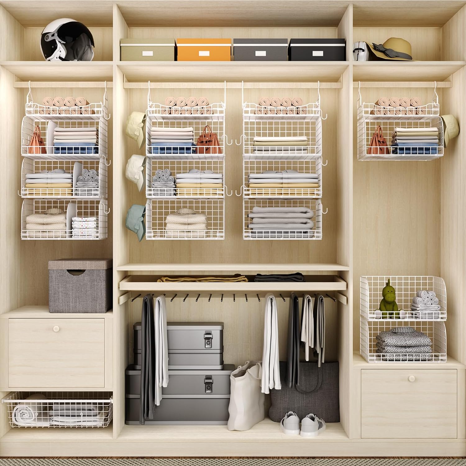 - [Open Metal Wire Basket for Easy Access]: The open design of these hanging shelves for closet makes it easy to view and grab your items quickly, improving convenience and efficiency in daily use