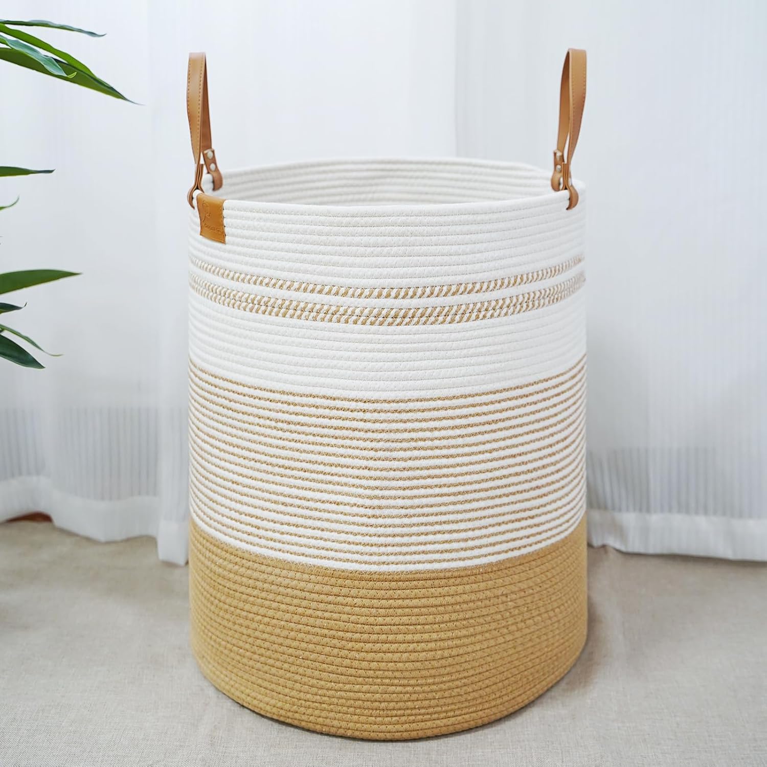 - Versatile Storage Solution: This tall woven cotton storage basket isn’t just for laundry! It’s the perfect blanket basket, toy organizer, or even a decorative piece in your living room. Whatever your needs, this large, multi-functional basket brings both style and practicality into your space