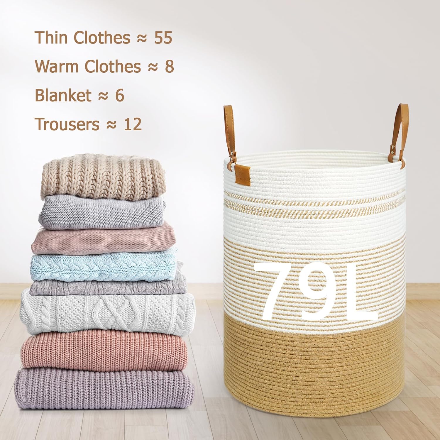 - Stylish & Functional: This tall laundry basket is crafted from premium woven cotton, offering a chic, minimalist design. Perfect for any modern home, it keeps your laundry, blankets, or toys neatly stored while complementing your décor. A versatile laundry hamper that doubles as a decorative storage basket