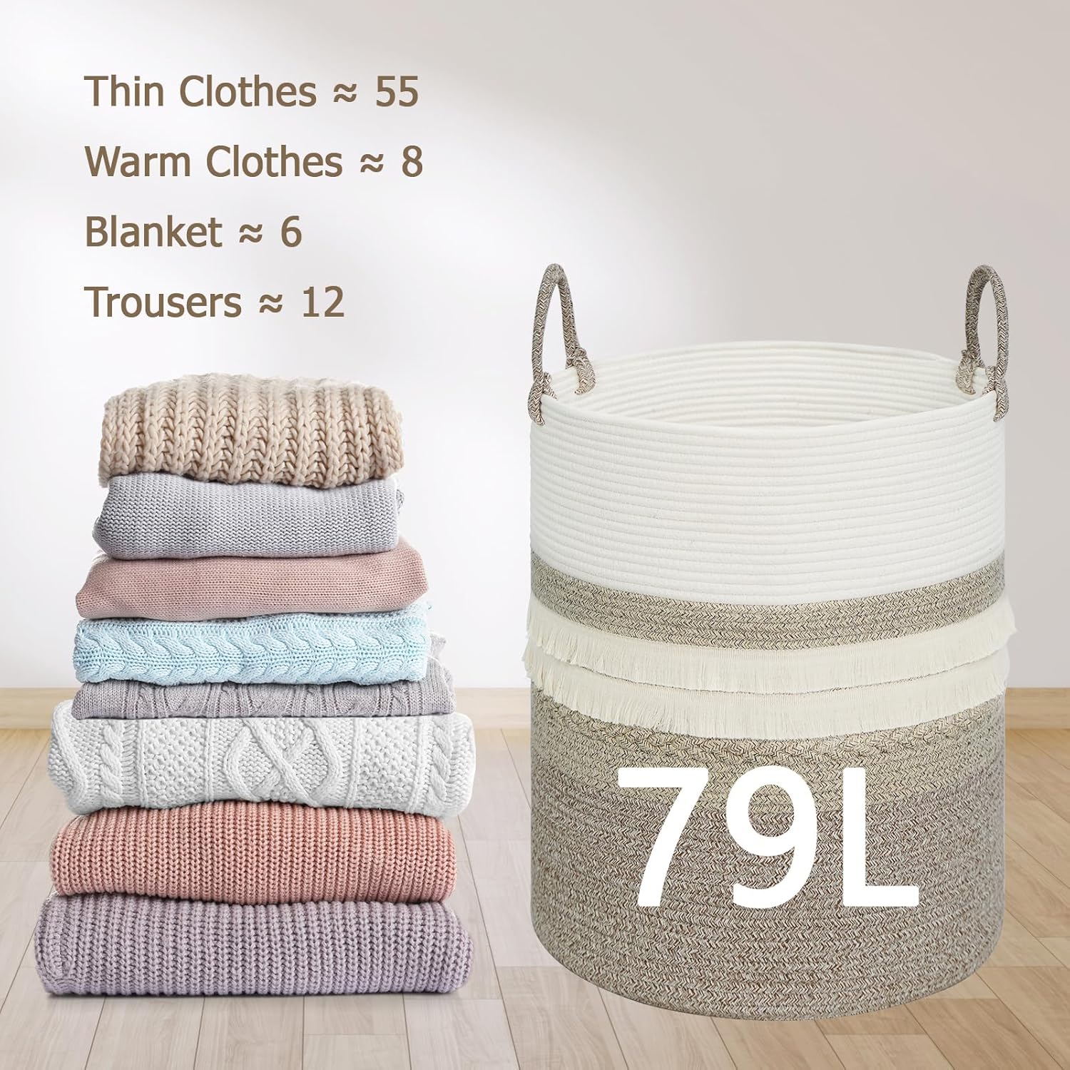- Large Capacity: With its 79 L size, this large laundry basket holds all your clothes, blankets, and pillows. Whether it's for the bedroom, nursery, or kids' room, it’s spacious enough to handle heavy loads without a hassle. No more clutter – just easy storage