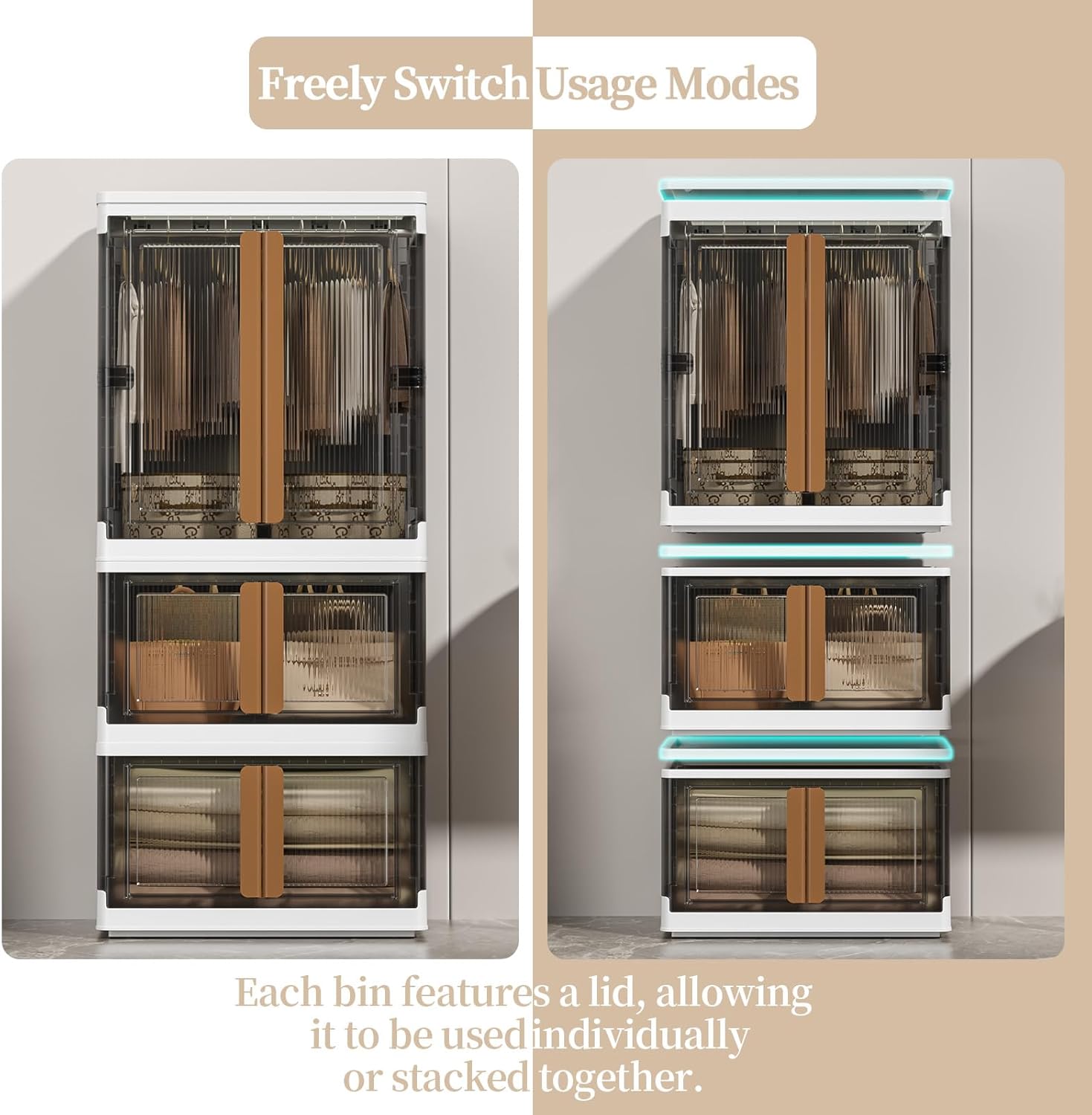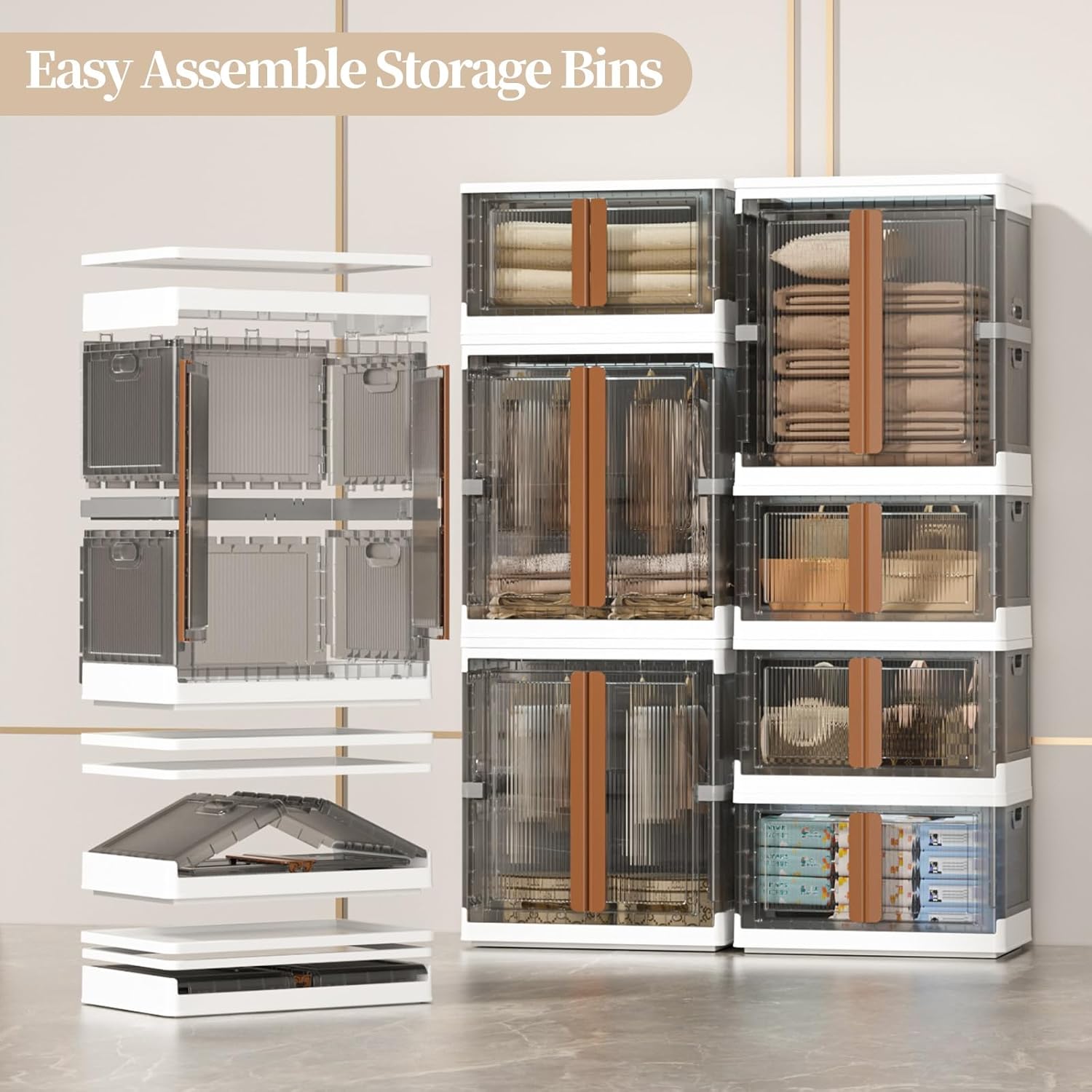 - 【Easy Assembly Closet Bins】This large-capacity wardrobe sets up in just 5 minutes, simply connect the lightweight panels, secure the buckles, and straighten the frame for instant clothes hanging or storage space. Featuring a dual-access design, you can effortlessly grab items from the top flip-lid or securely open the front door with built-in lock buckles to prevent accidental openings and dust intrusion, keeping belongings neatly protected.