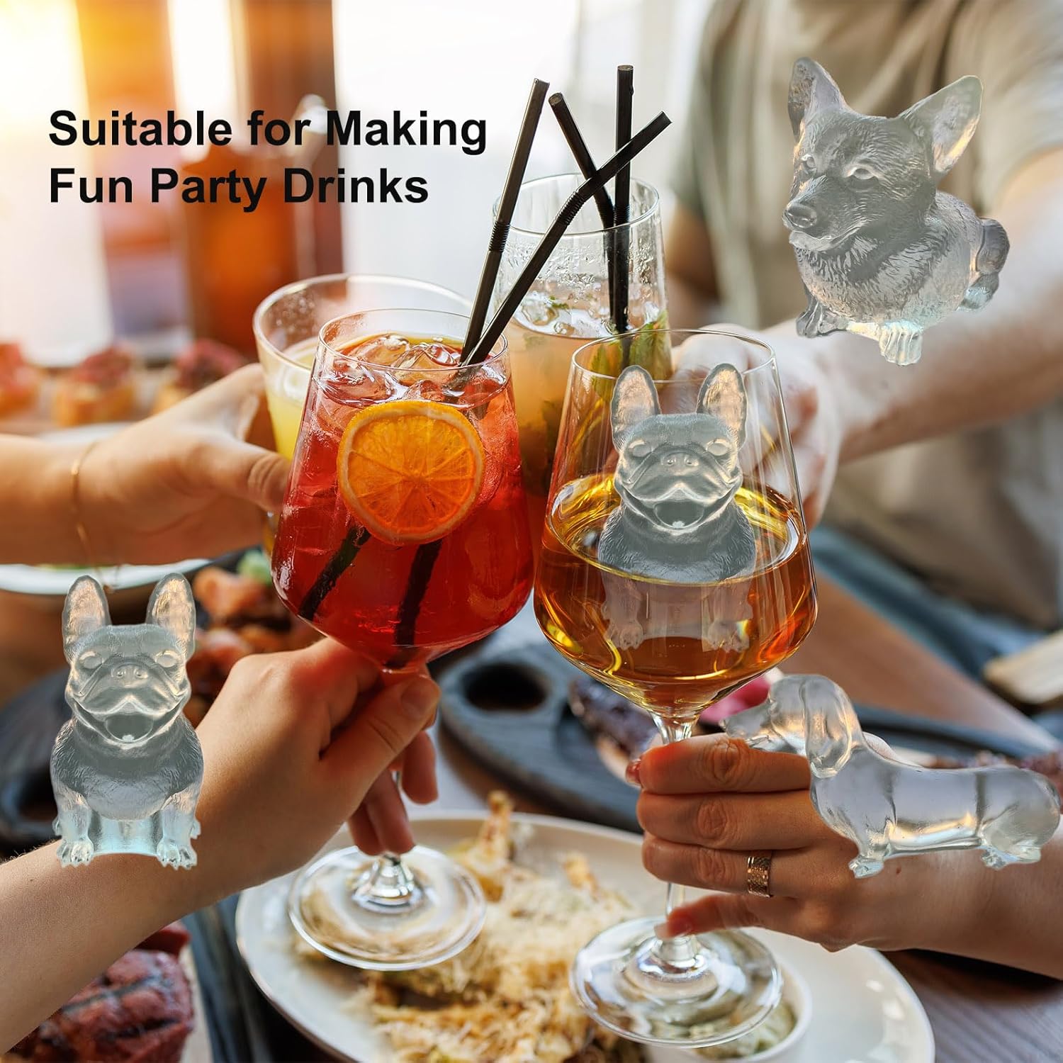 - Fun French Bulldog Shaped Ice Cube Mold -- French Bulldog Ice Cube Mold can make unique French Bulldog shaped ice cubes; it has a large size and is designed for whiskey glasses, which is very suitable for drinks that need to melt slowly, such as whiskey, cocktails, bourbon, rum, tequila, gin, etc.