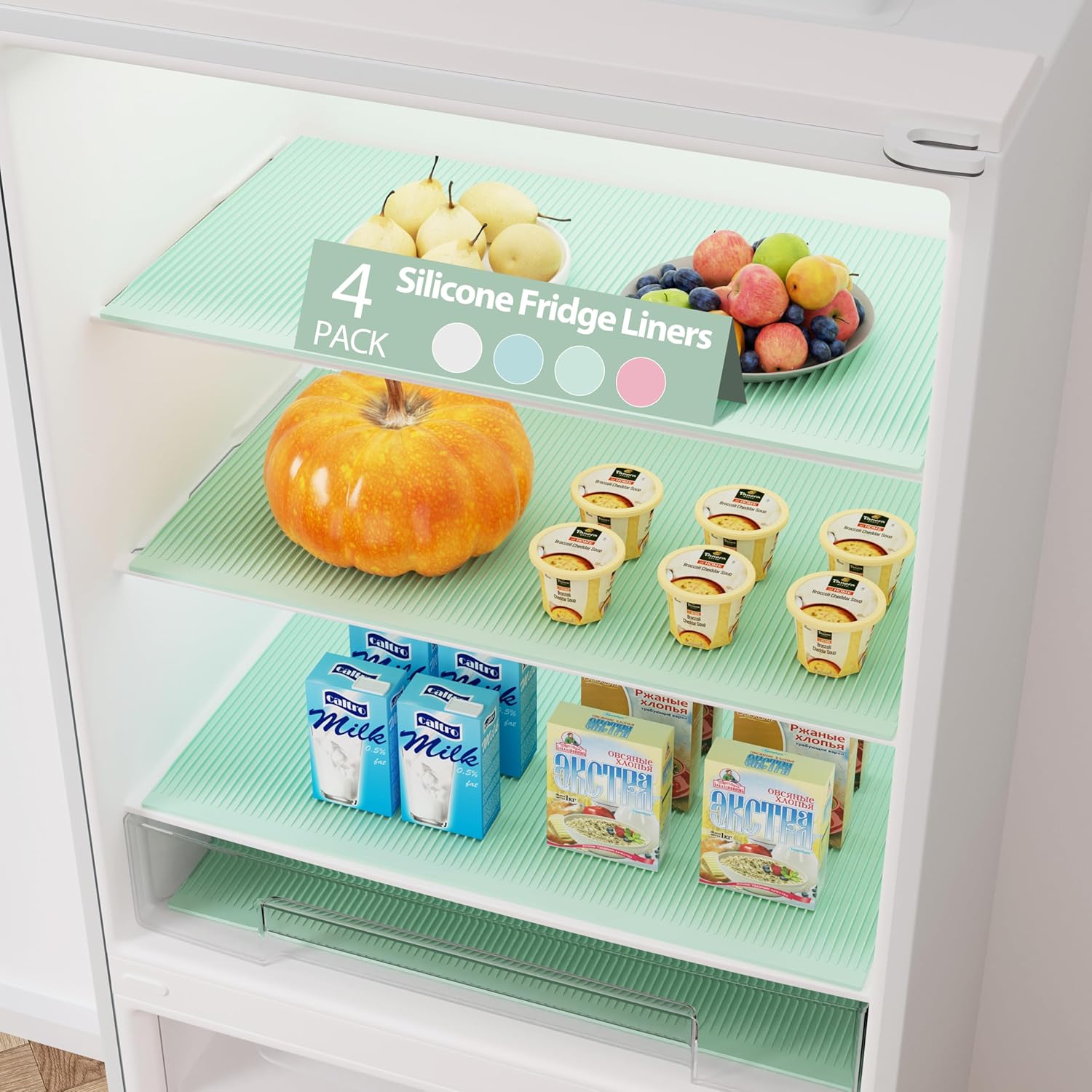 GOYLSER Silicone Refrigerator Shelf Mat, 4 Pack Waterproof Fridge Mat Liners Easy Clean Fridge Pad, Green Refrigerator Liner for Shelves 17.7x11.8 inch Drawer Table Mat