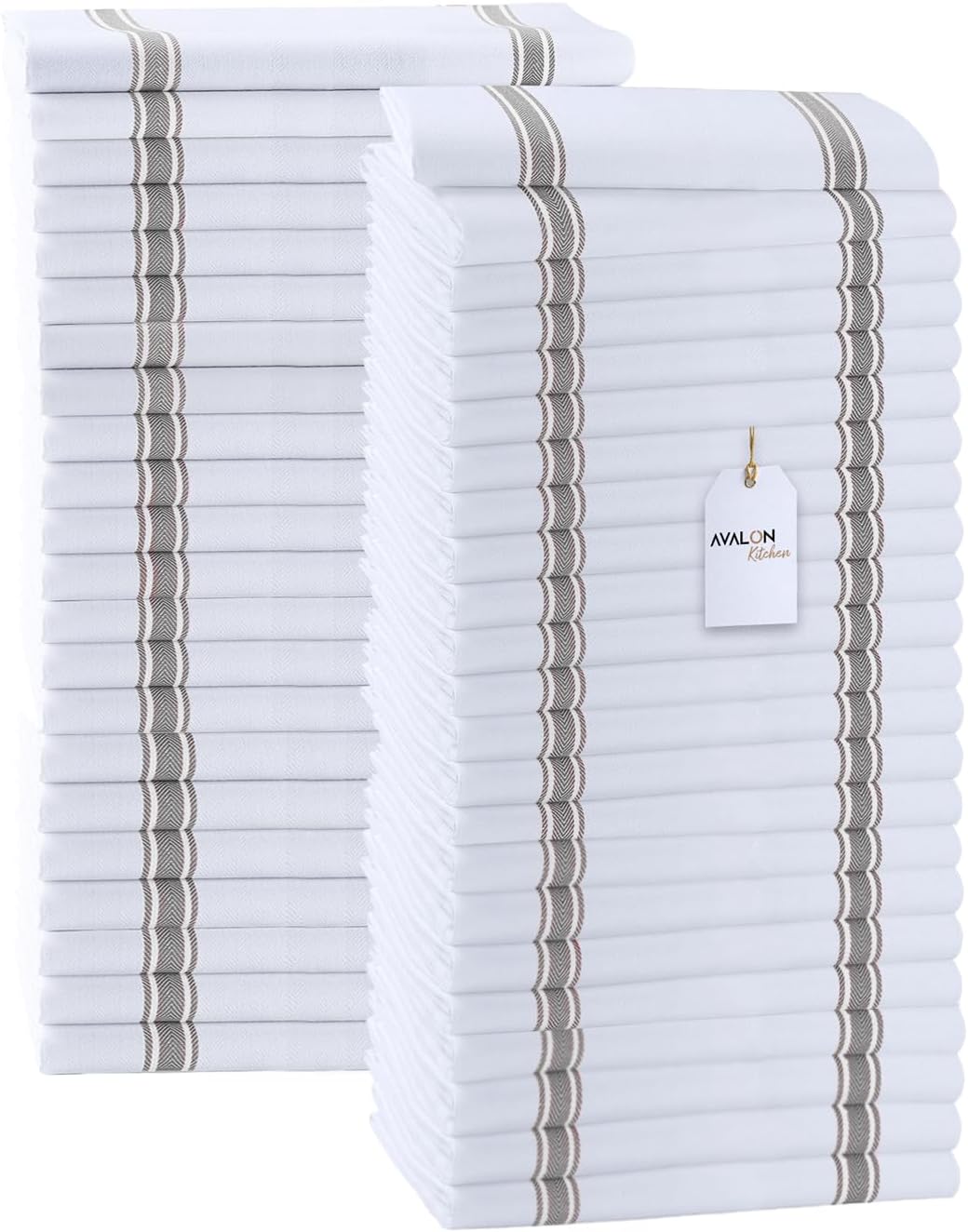 - SOFT AND ABSORBENT – These kitchen towels are made from 100% ring-spun cotton to assist with all your household and kitchen chores. The dish towels are carefully designed with a herringbone weave which gives a soft feel and absorbency to dry effectively.