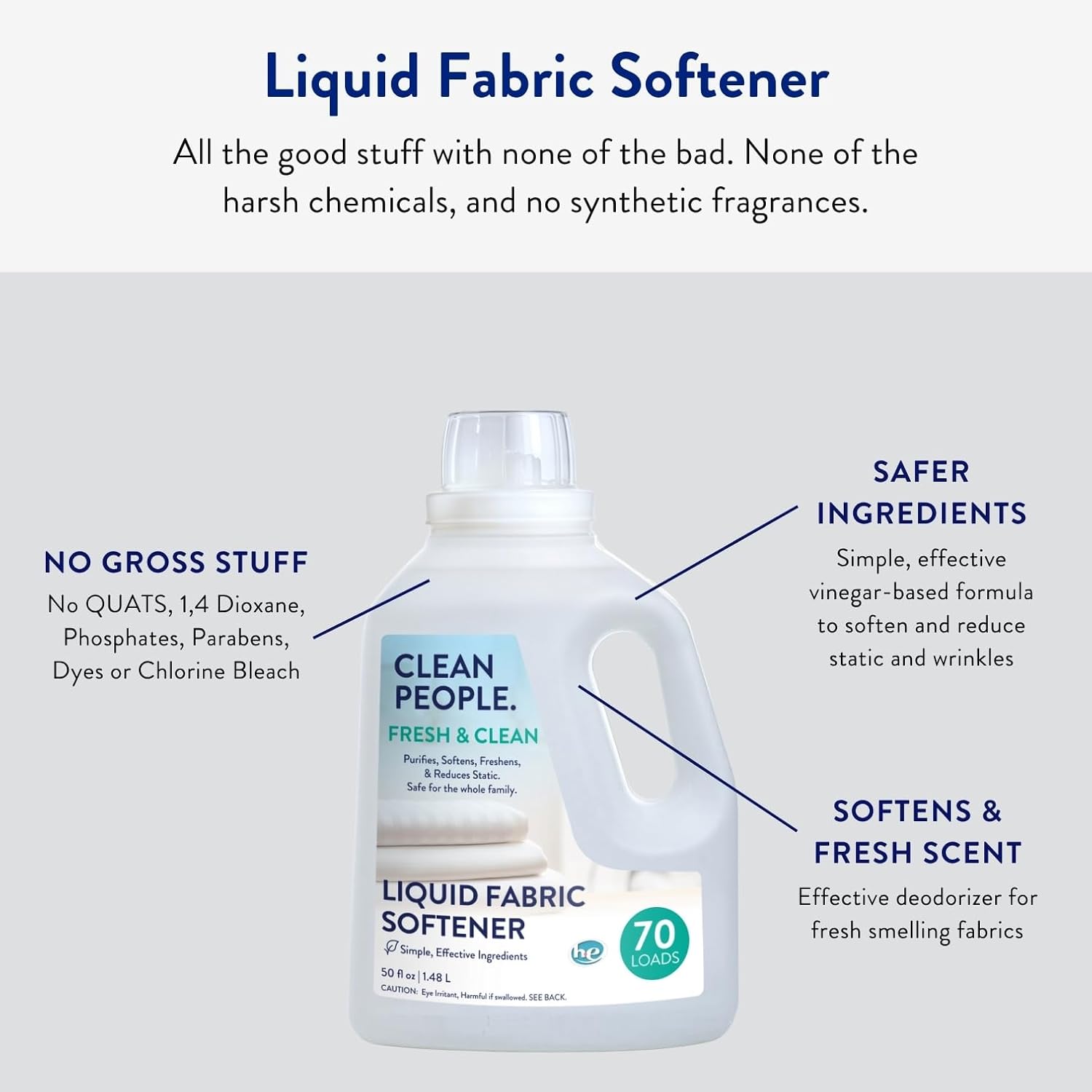 The Clean People Liquid Fabric Softener - Softens & Removes Static Cling - Vegan (100 Fl Oz, Fresh & Clean)