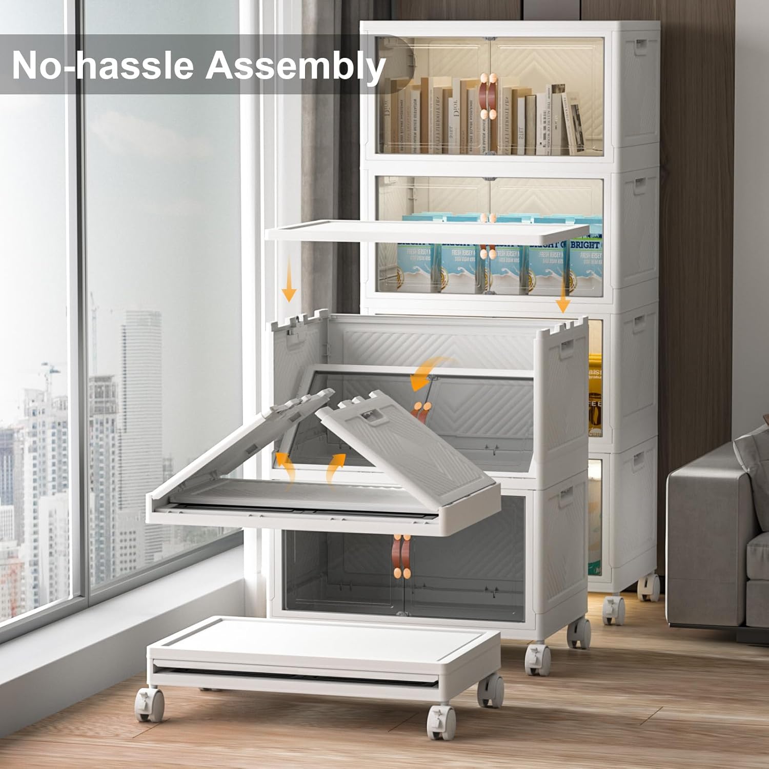 Extra Large Stackable Storage Bins with Lids & Wheels & Door, 448QT-112QT/28GAL*4Pack Foldable Collapsible Closet Organizers, Plastic containers drawers for bedroom Dorm