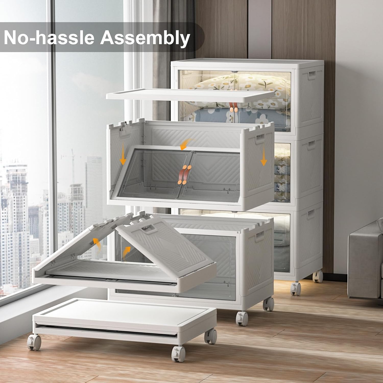 Extra Large Stackable Storage Bins with Lids & Wheels & Door, 480QT-160QT/40GAL*3Pack Foldable Collapsible Closet Organizers, Plastic containers drawers for bedroom Dorm