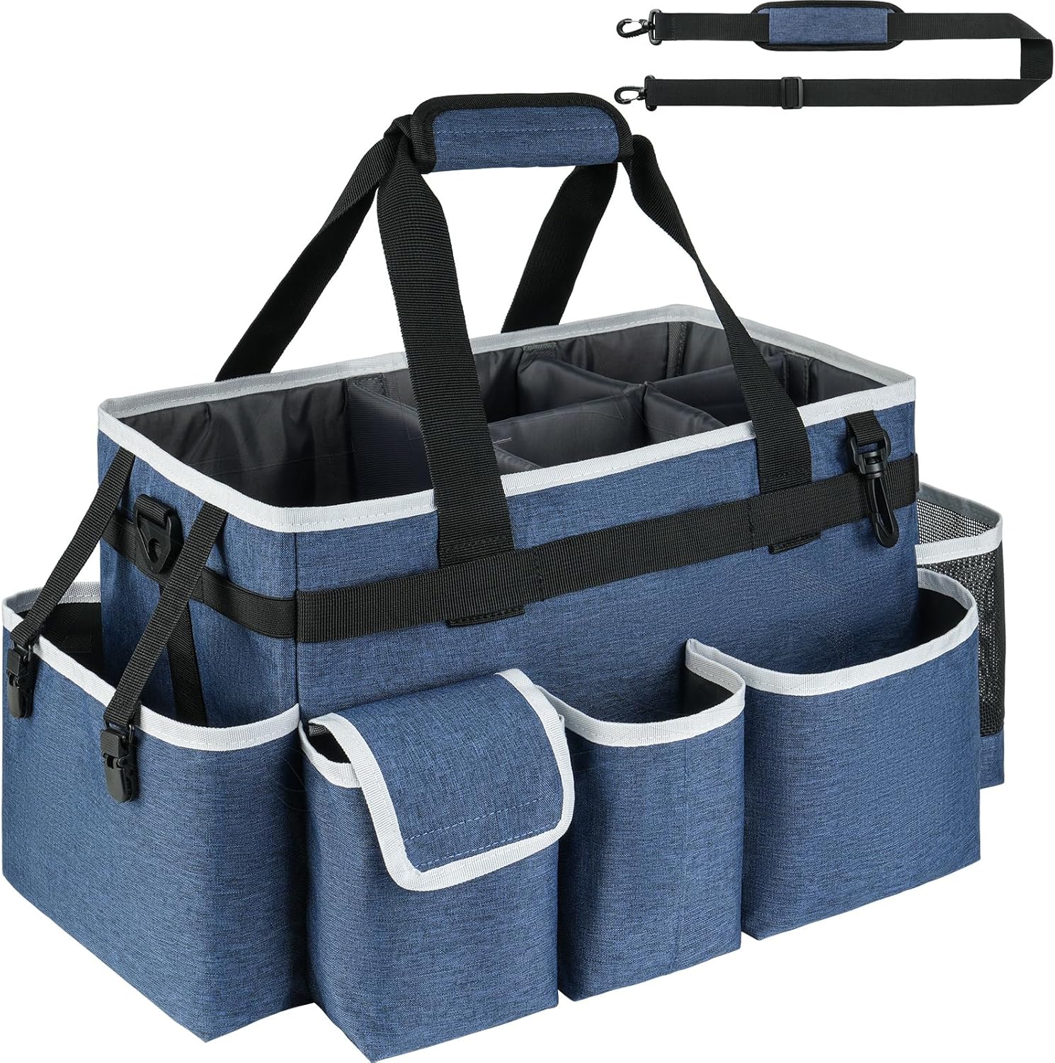 Cleaning Caddy Bag,Large Cleaning Supplies Organizer with Handle for Housekeepers, Blue