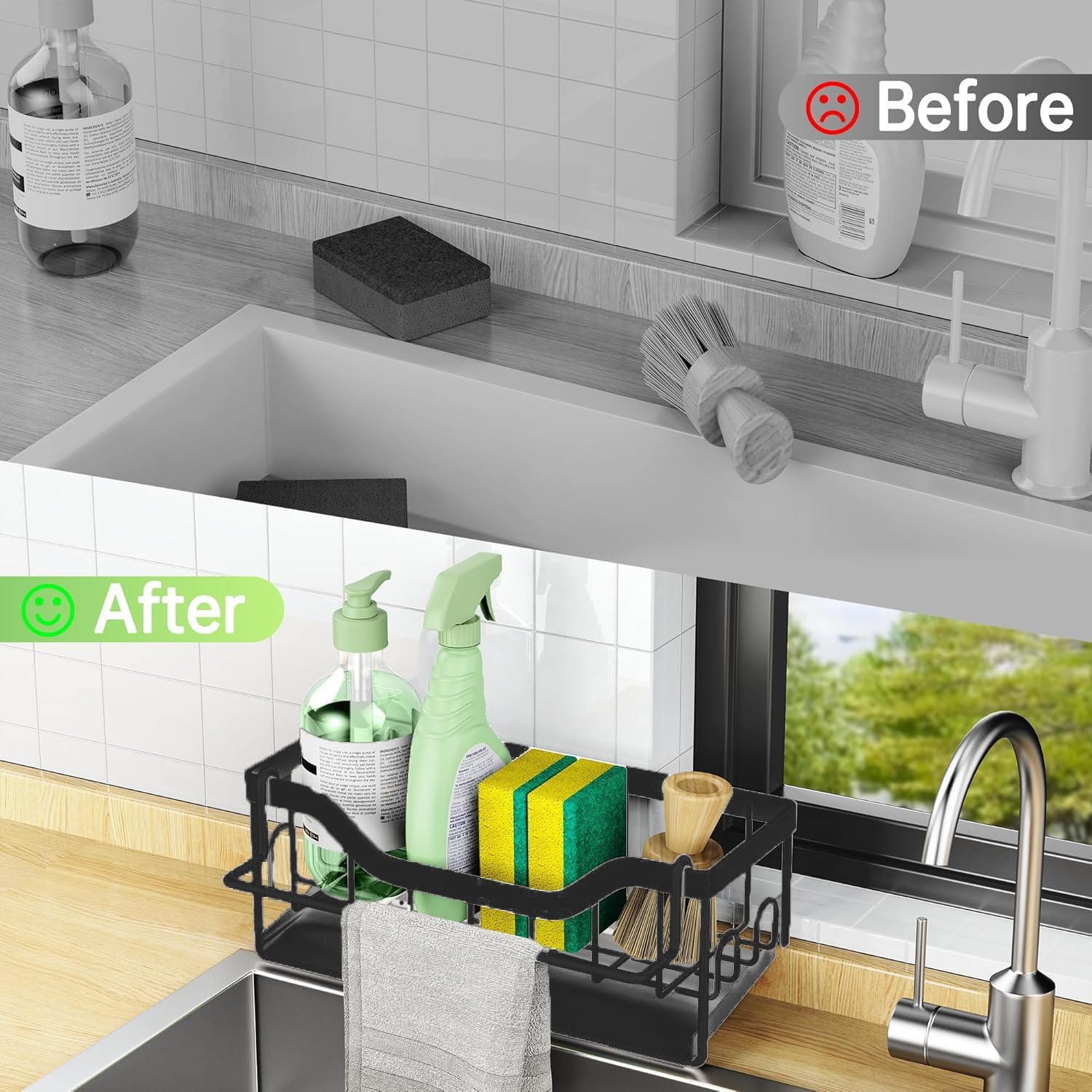 - Suitable for Countertops: The kitchen sink organizer is perfect for countertops. Can be hung on hooks or placed on the sink to keep the kitchen area clean and tidy.