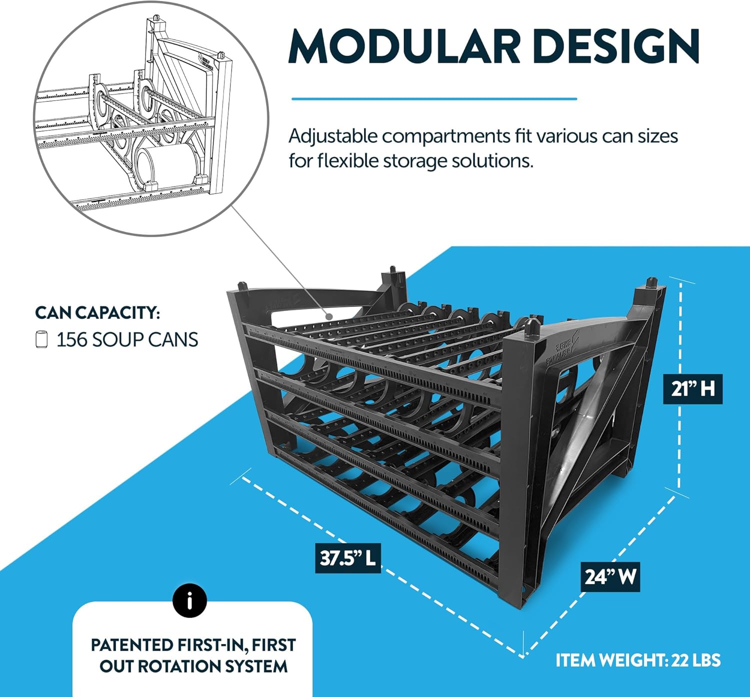 - DURABLE & STURDY BUILD - Holding up to 100 pounds, this sturdy can food storage organizer is made for heavy-duty storage. Whether it’s soups, sodas, or canned veggies, its interlocking design keeps everything stable and secure.