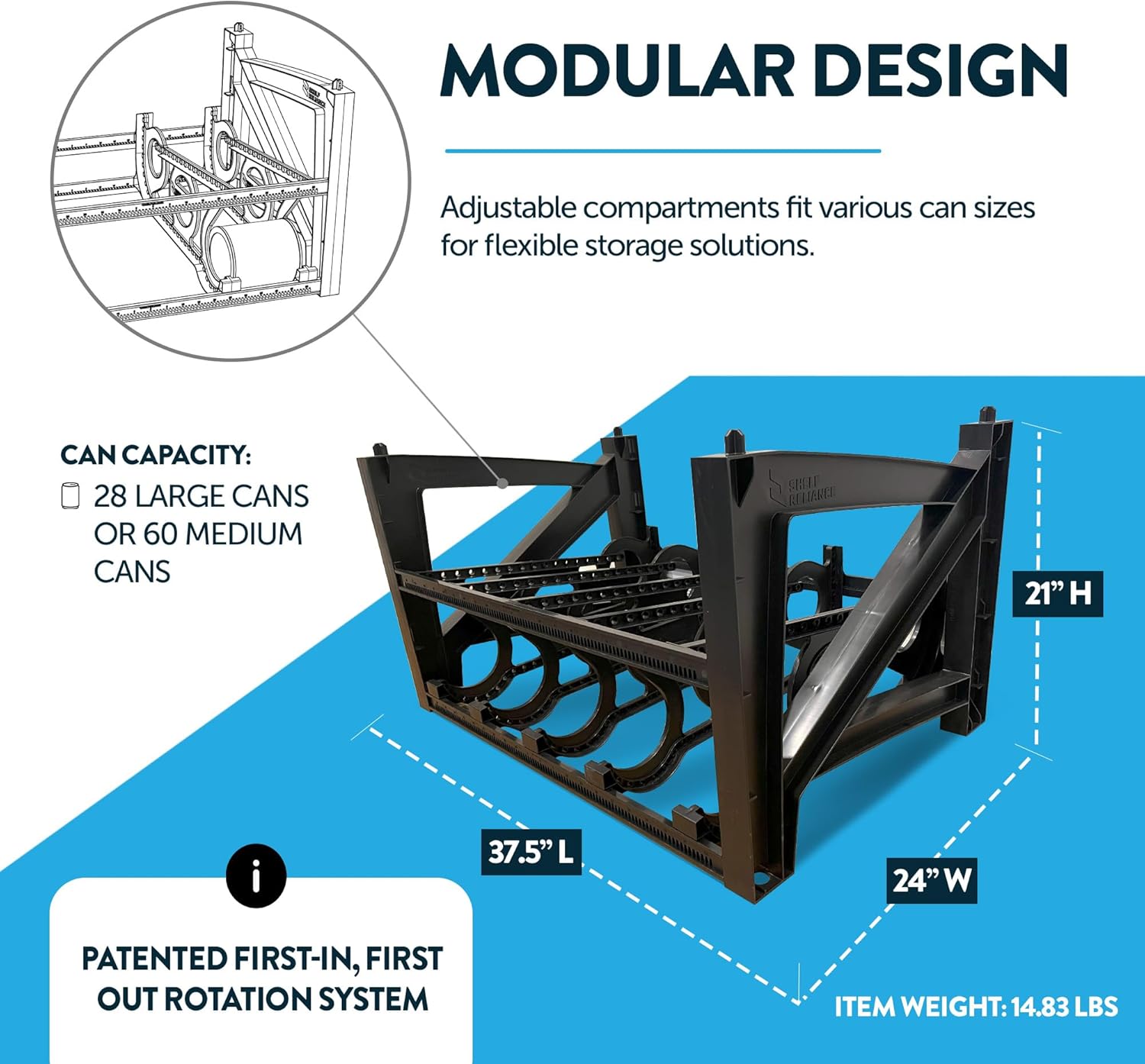 - DURABLE & STURDY BUILD - Holding up to 100 pounds, this sturdy can food storage organizer is made for heavy-duty storage. Whether it’s soups, sodas, or canned veggies, its interlocking design keeps everything stable and secure.
