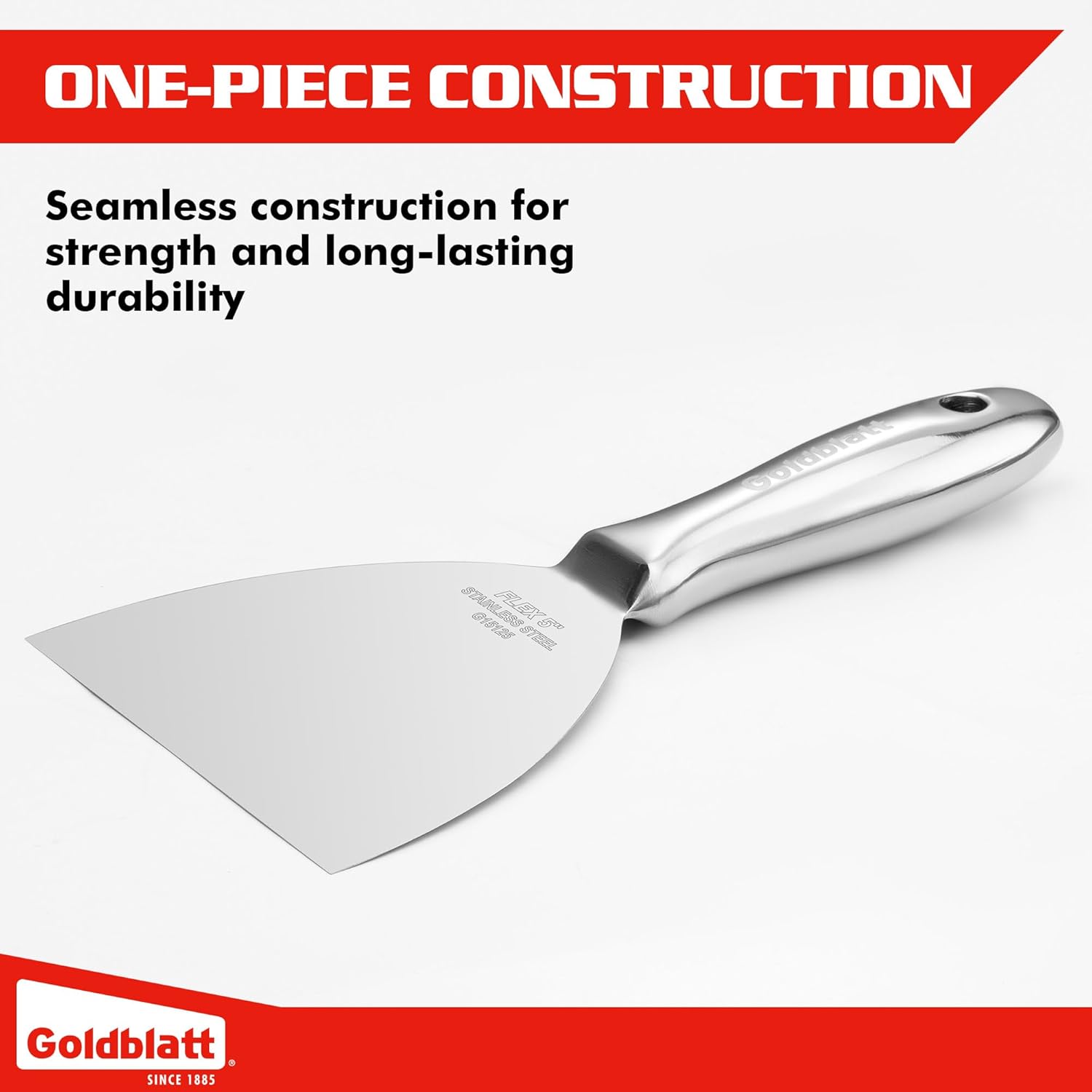 Goldblatt 5" Putty Knife, One-Piece Paint Scraper Tool, All Stainless Steel Joint Knife with Flexible Blade, Seamless Design, Metal Ergonomic Handle - for Drywall Repairing, Finishing and Scraping