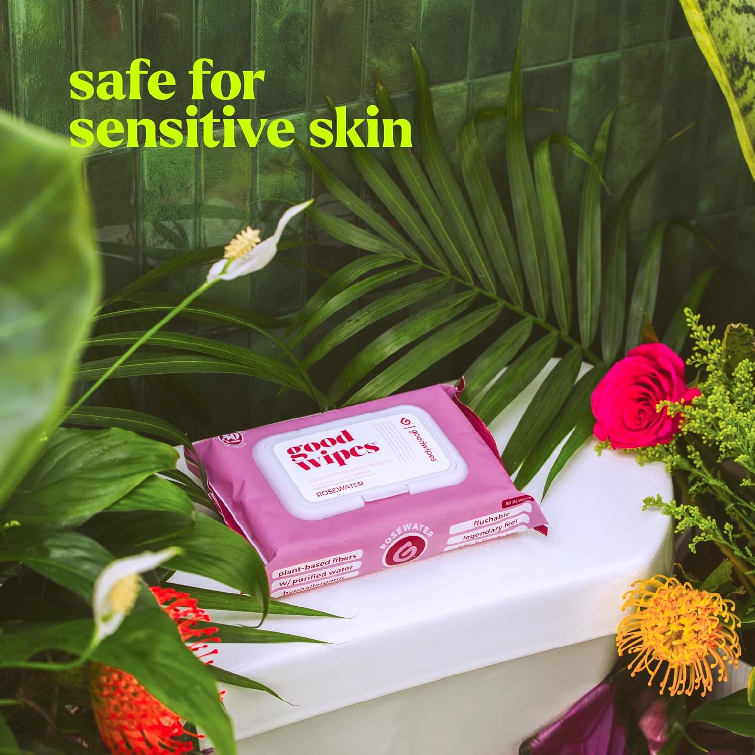 goodwipes Flushable Butt Wipes - Vitamin E & Aloe - Sewer & Septic Safe - Extra Large Adult Wet Wipes For Women & Men - Bathroom Essentials - Rosewater, 318 Count (6 Packs + 1 Travel)