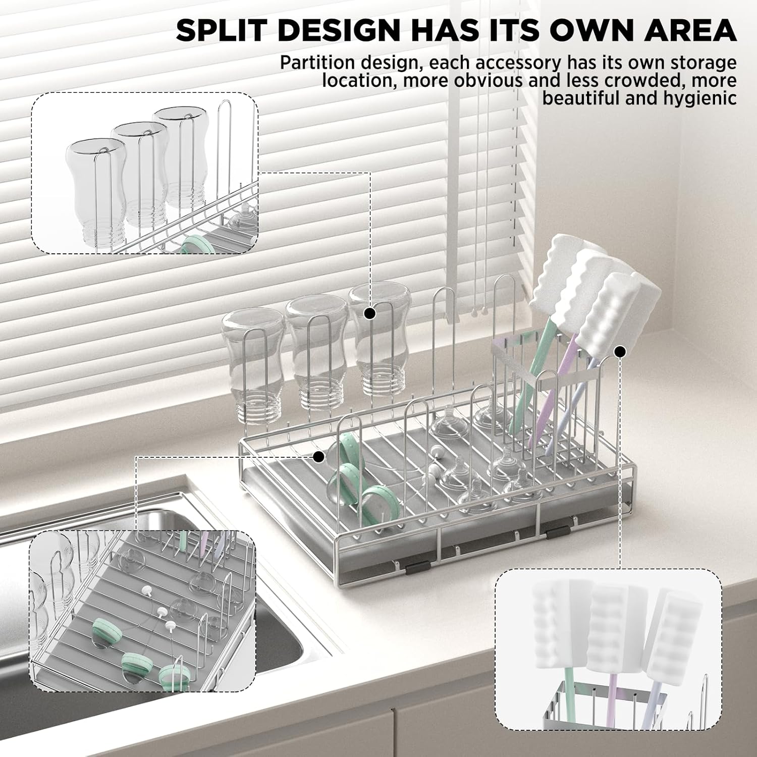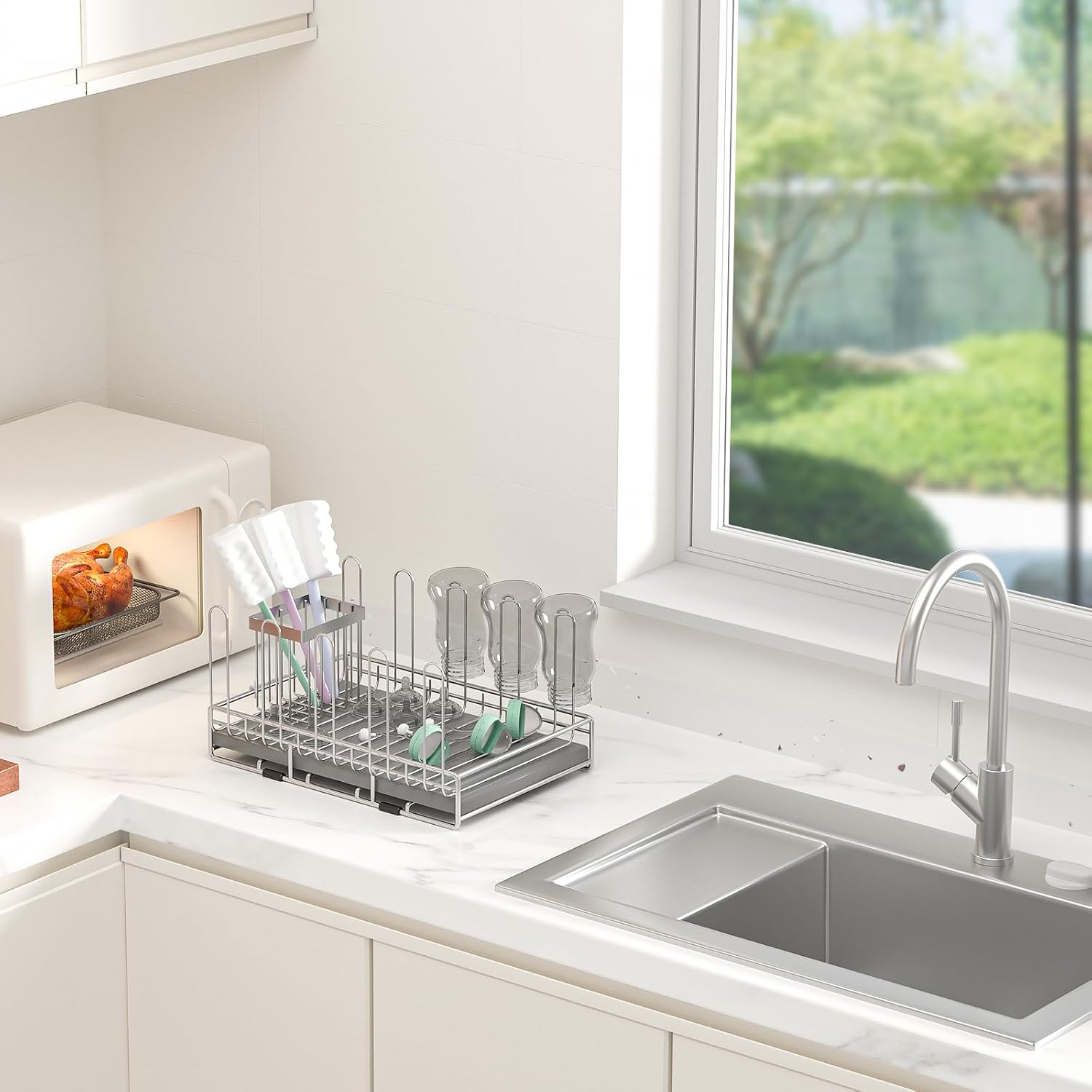 Baby Bottle Drying Rack Organizer Stainless Steel Large Countertop Glass Water Bottle Dryer Holder with Diatomite Stone Quick Dry Easy Clean and Brush Holder