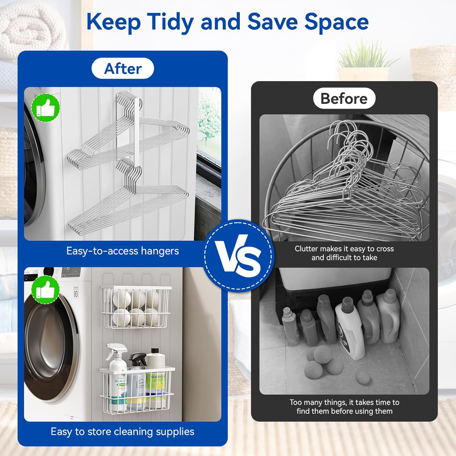 - Maximize Laundry Room Organization and Storage Space: The magnetic dryer ball holder and hanger organizer can be placed on the side or front of the dryer for easy to access and saving space on the laundry countertop. The small space in a small laundry room can also be reasonably utilized, and there will be no more messy placement and scattering.