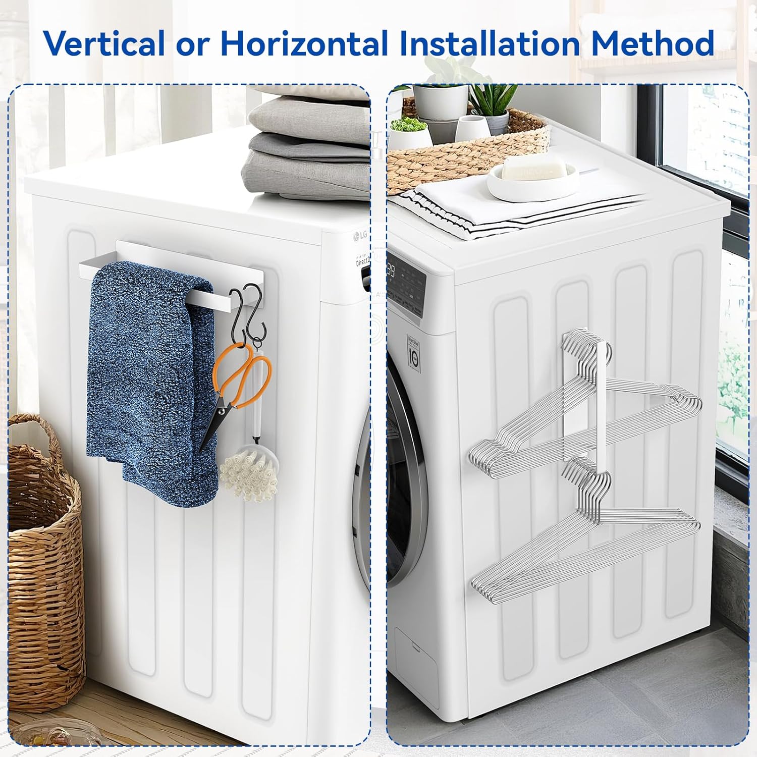 - Durable and Simple: The back is made of strong magnets and high-quality glue, and the magnetic strips will not fall off easily. The drying ball holder and hanger holder are made of high-quality metal materials with smooth paint, durable and rust-proof. Add a pleasant look to your laundry room and say goodbye to monotony.