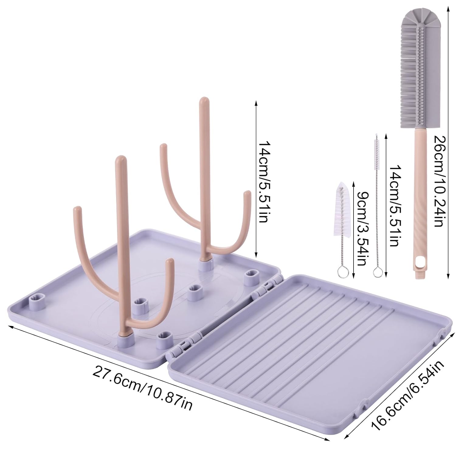 Baby Bottle Drying Rack -Travel Baby Bottle Drying Rack Set, Cleaner Kit with Silicone Bottle Brush,Straw Brush, Suitable for Home use or Traveling with Babies, Camping(Gray)