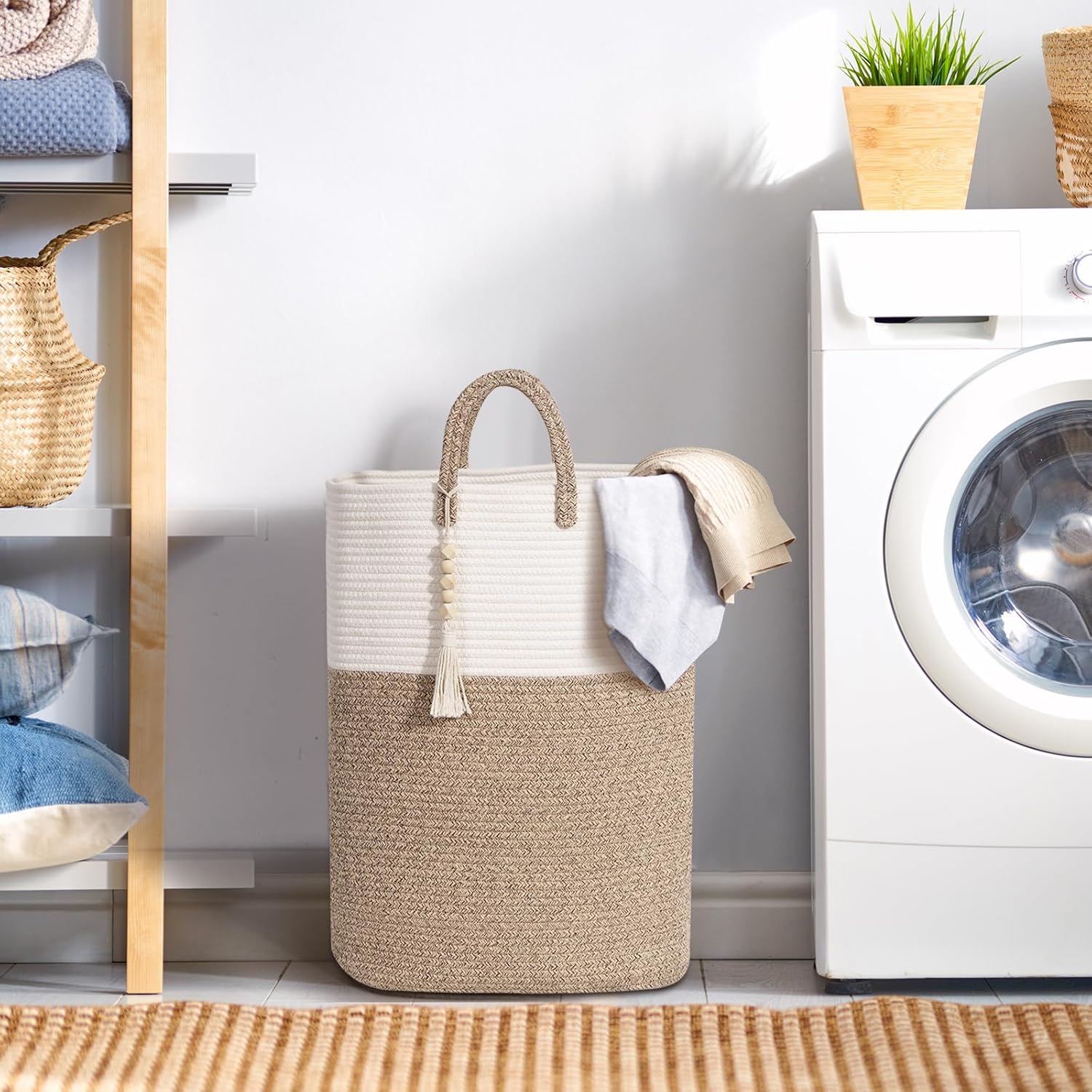 - 🌈[DURABLE, BREATHABLE & SKIN - FRIENDLY COTTON]: Made of sturdy and odor-free rope cotton, woven laundry basket has a solid addition to any space. Tall laundry basket quite sturdy and spacious, capable of holding a good amount without losing its shape, which adds to its practicality.