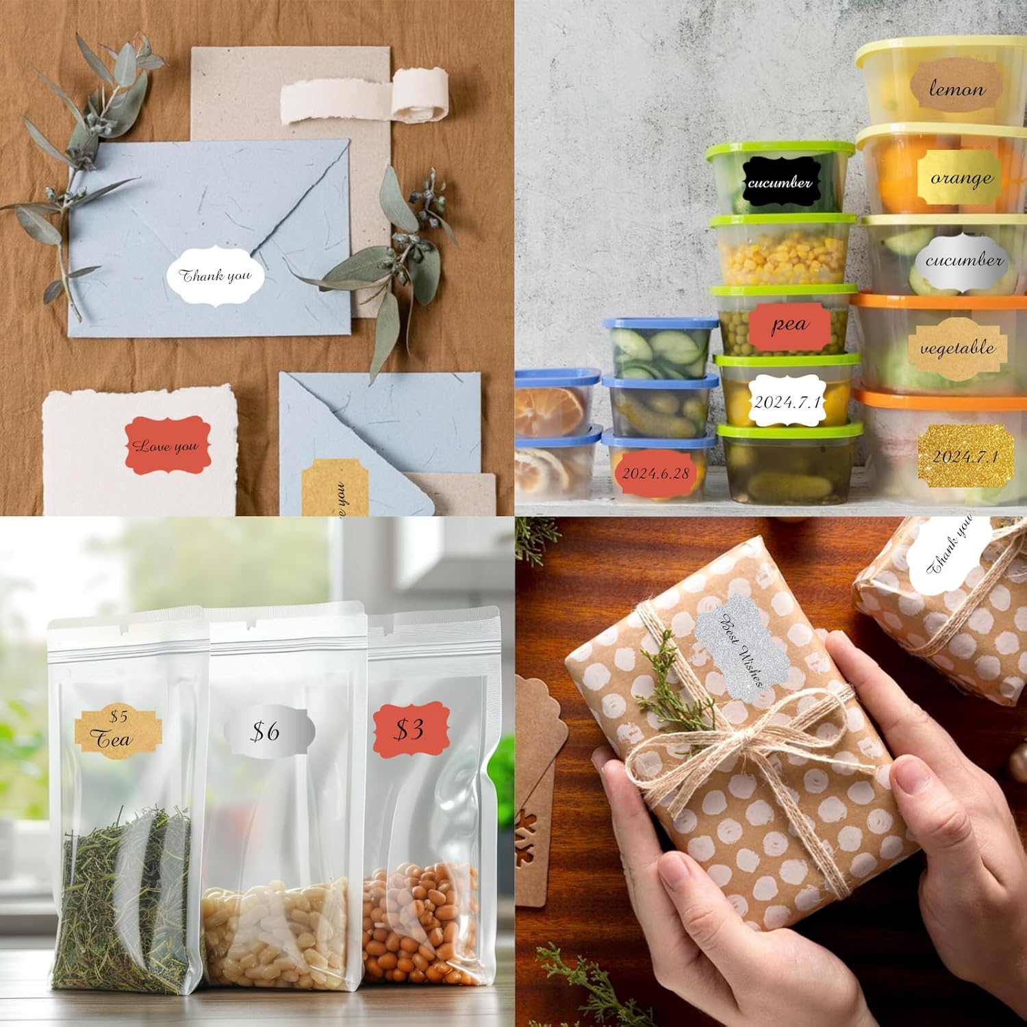 - Made of high quality sticker papers, the surface is delicate and smooth that you can write easily with most common markers or pens. Perfect to mark items like jars, gifts, office folders, kitchen bottles, pantry objects and sundries storage, etc. Keep you away from mess