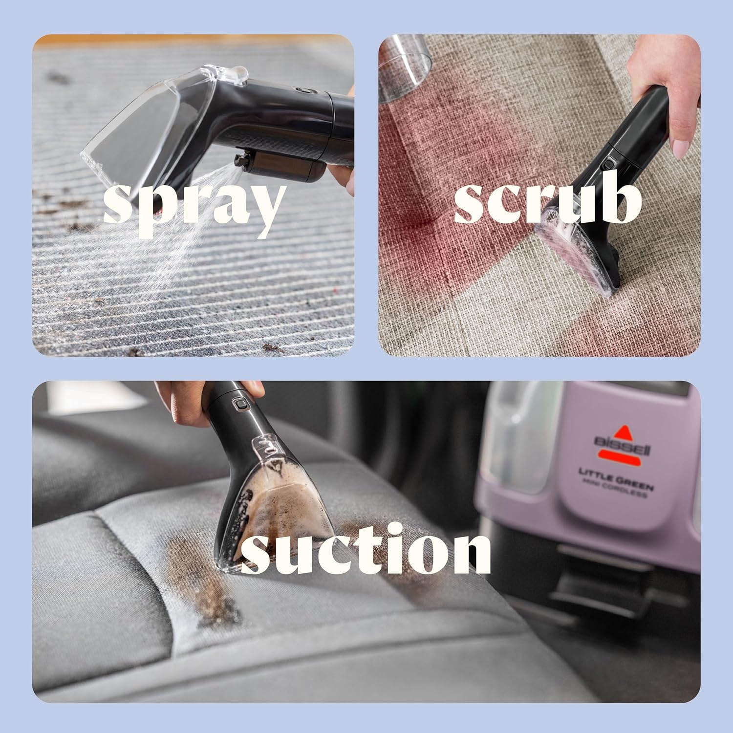 - IN THE BOX: Includes 4β tough stain tool with removeable lens, HydroRinse self-cleaning hose tool, and 8 oz. BISSELL Little Green Formula