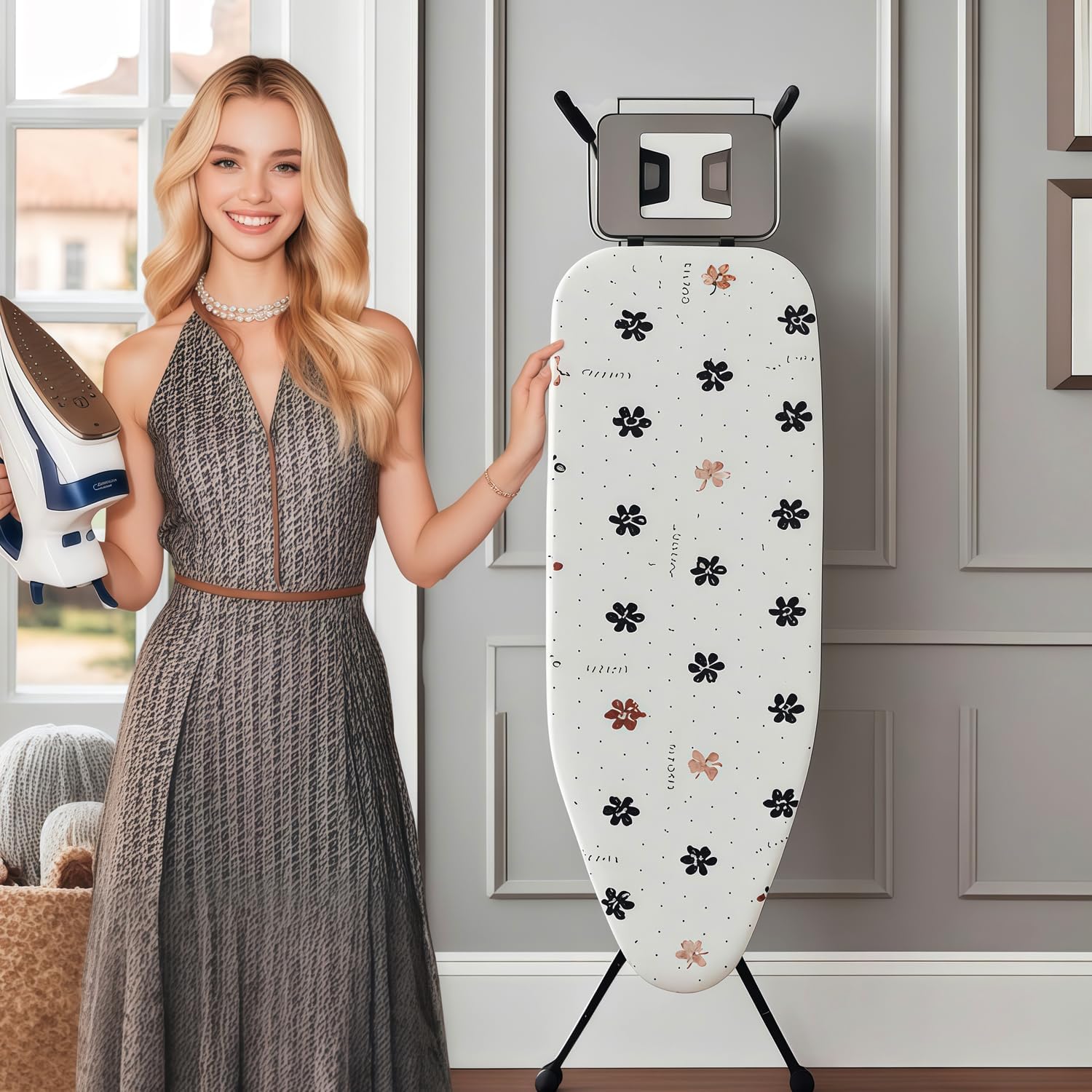 - 【Detachable and Washable Cover】:-The ironing board cover is designed for easy removal and washing. Simply detach it from the board and toss it in the washing machine for a quick and thorough clean. This feature helps maintain hygiene and prolongs the life of your cover.