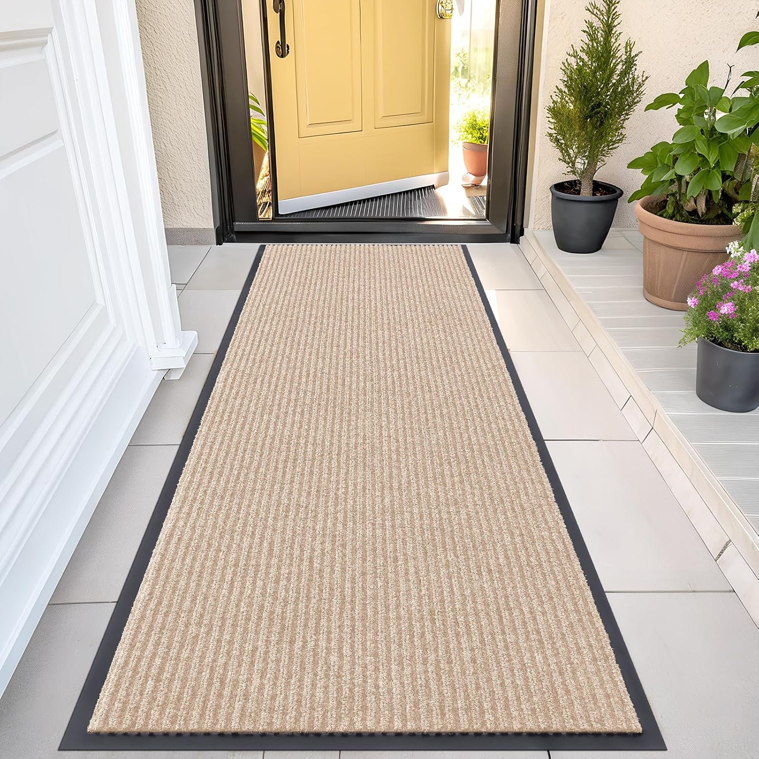 OLANLY Front Door Mat Indoor Outdoor Entrance, Waterproof Heavy Duty Doormat, Fade Resistant, Low Profile, Easy Clean Patio Porch Welcome Floor Mats for Entry, 47x23, Beige