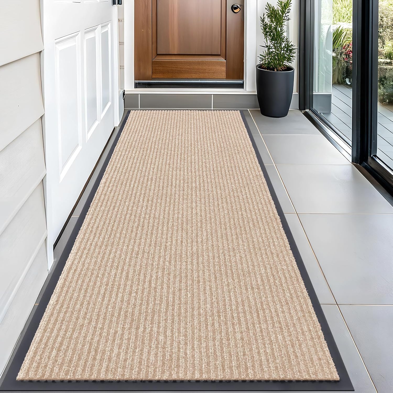 OLANLY Front Door Mat Indoor Outdoor Entrance, Waterproof Heavy Duty Doormat, Fade Resistant, Low Profile, Easy Clean Patio Porch Welcome Floor Mats for Entry, 59x23, Beige