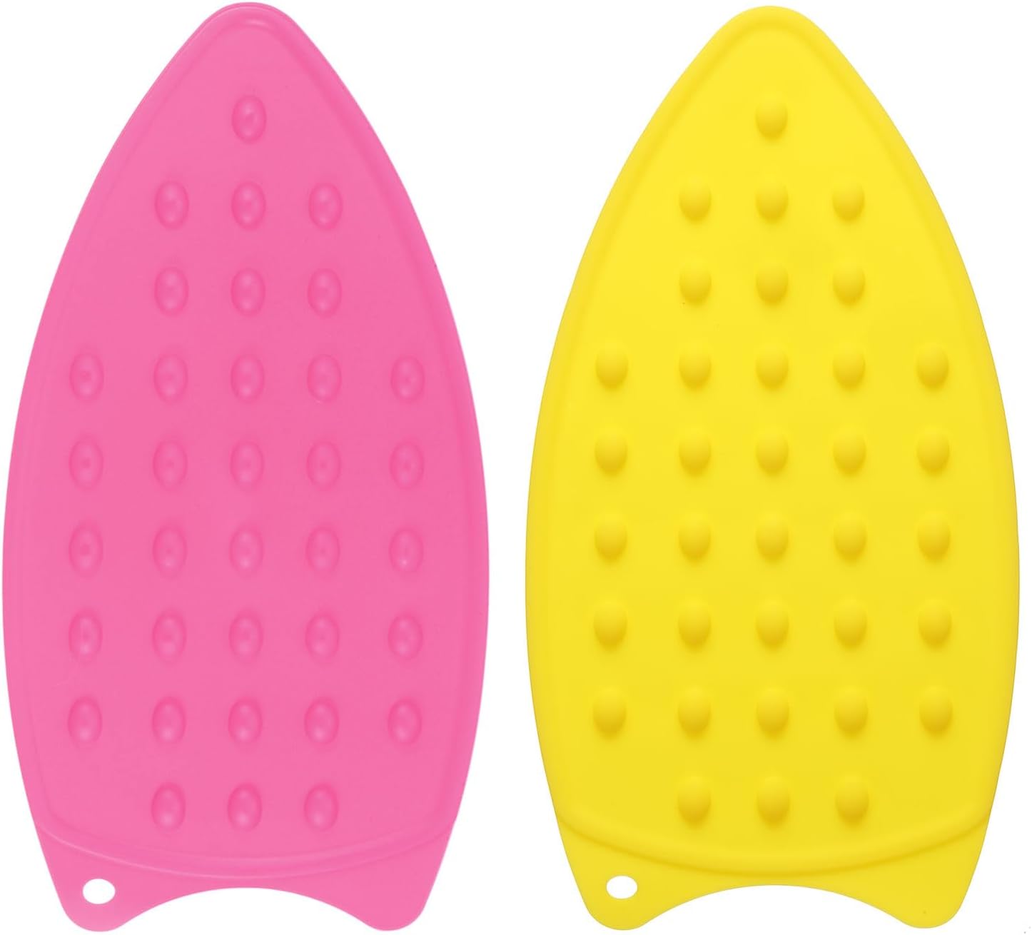 HARFINGTON 2pcs Silicone Iron Rest Pad, Multipurpose Iron Hot Resistant Mat Iron Rest Plate for Ironing Board Hot Heat Resistant Steam Compact Mat, Fuchsia/Yellow