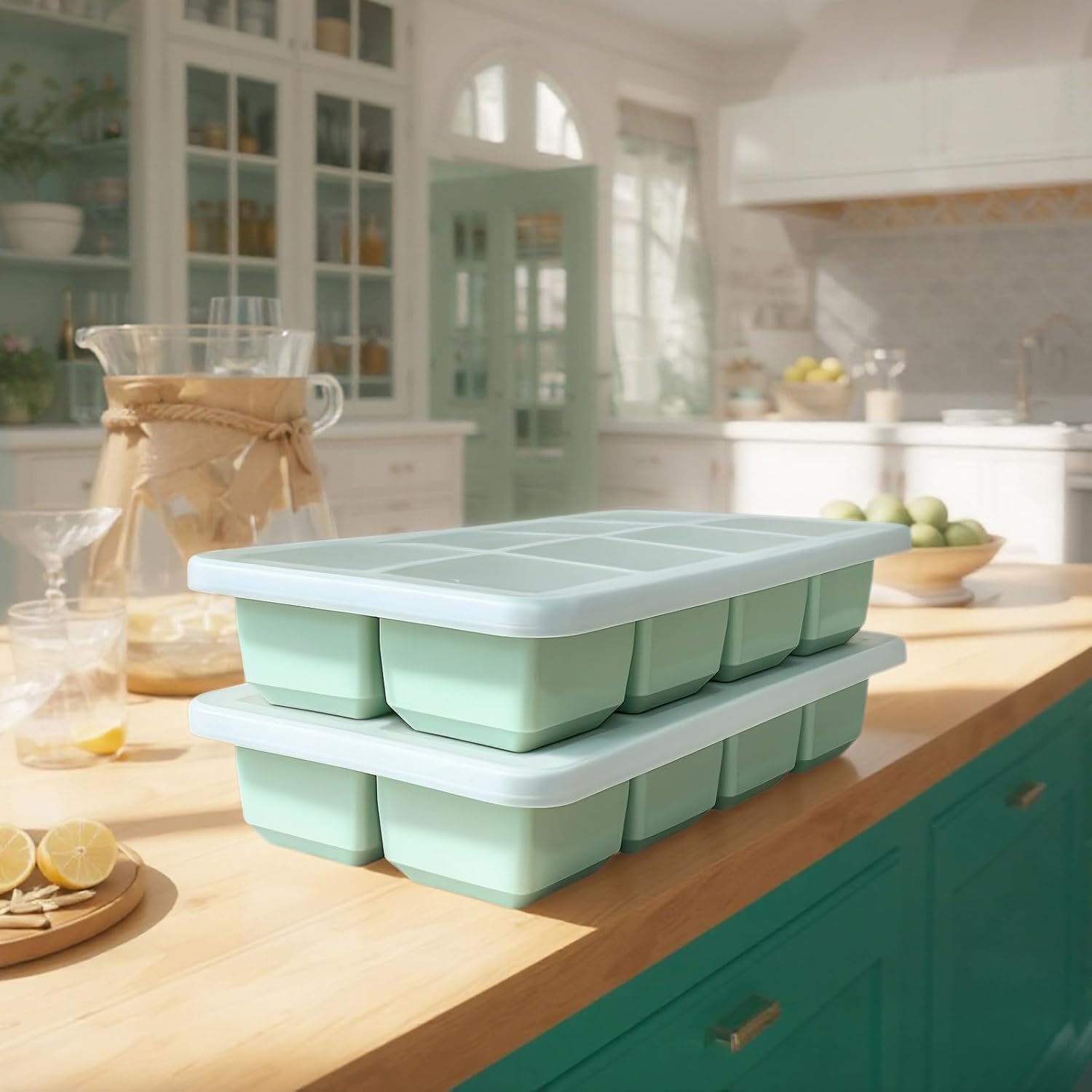 2 Pack Silicone 2 Inch Large Ice Cube Molds for Cocktails Wine Fruit and Bourbon Whiskey Easy Release Ice Cube Tray with Lid Ideal for Cold Drinks and Entertaining Gatherings (Mint Green)