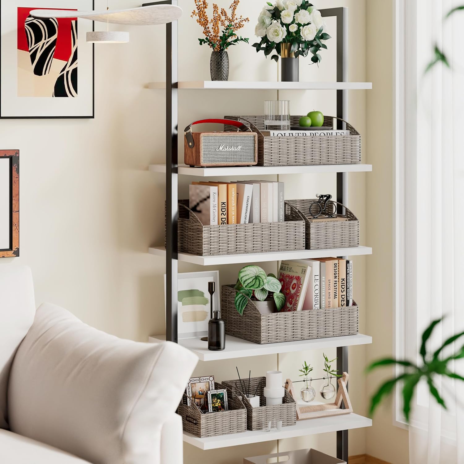 Ollieroo Rattan Storage Baskets, Handwoven Wicker Storage Bins with Built-in Handles, Storage Container Baskets for Shelves, Bedroom, Bathroom, Laundry Room or Kitchen(Grey)