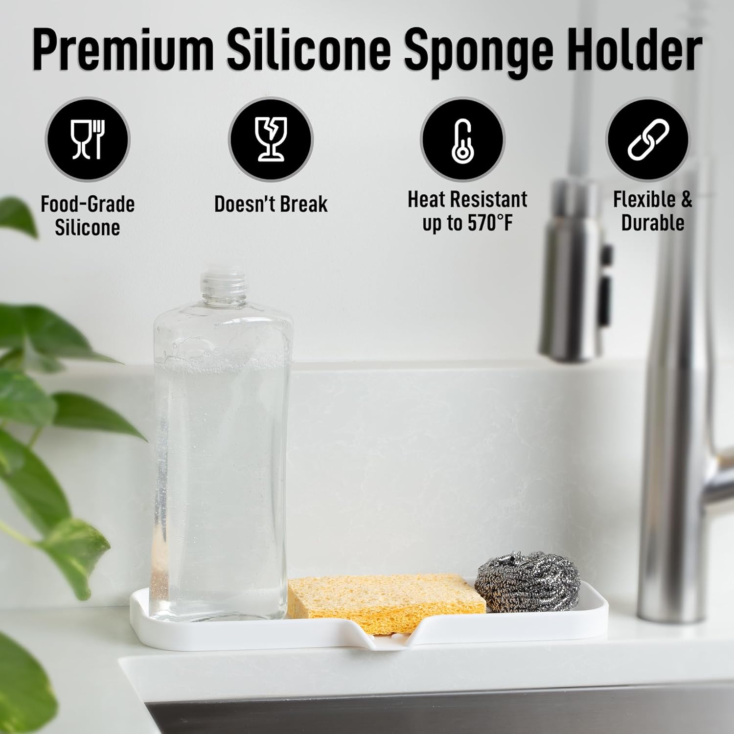 Zulay Large Silicone Sponge Holder (12x4) – Flexible Sink Organizer Tray for Kitchen & Bathroom – Multipurpose Soap Dish for Sponges, Makeup, Trinkets & More (White)