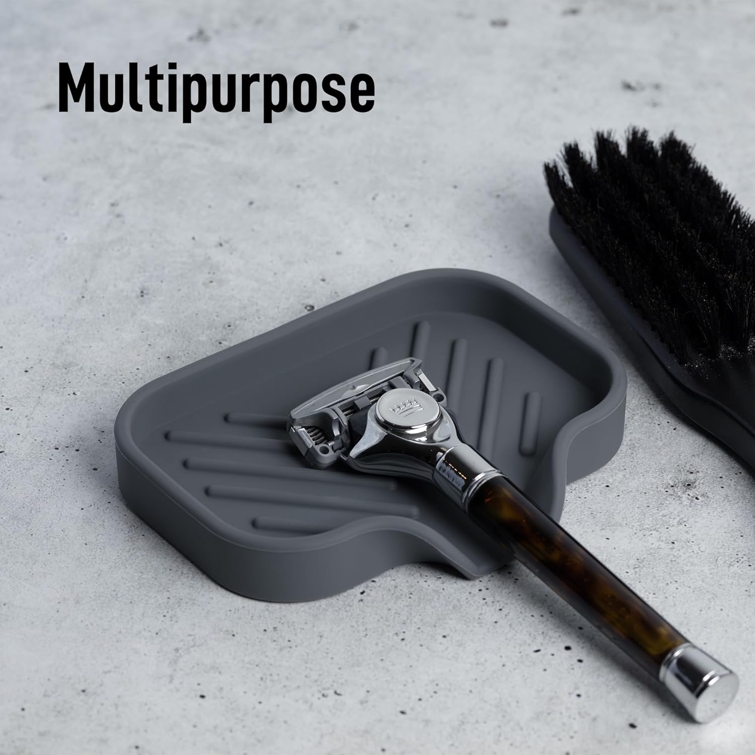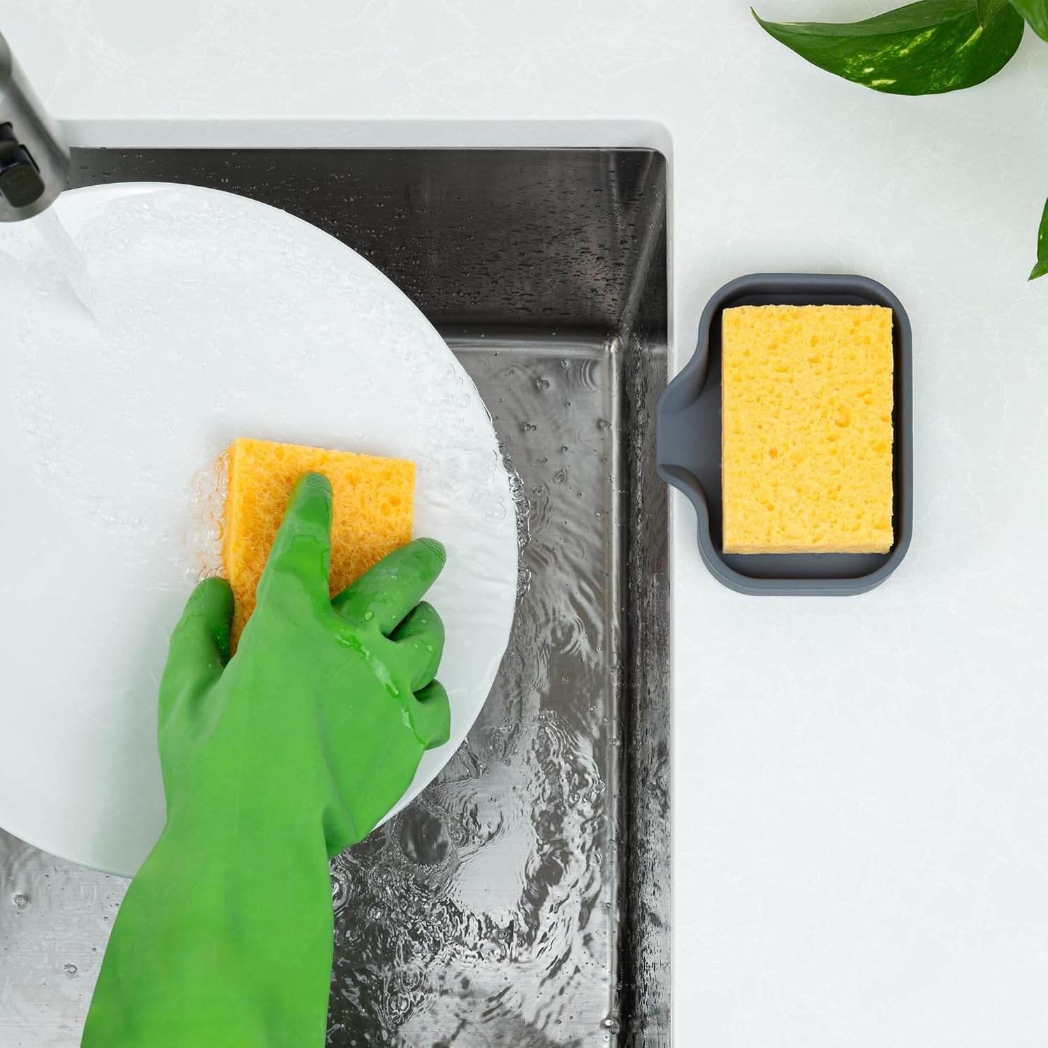 - MESS-FREE COUNTERTOPS: Keep your sink area tidy and free from soap residue with our small silicone sponge holder. Measuring 4.9 x 3.3 inches, this compact tray is ideal for holding a sponge, scrubber, soap bar, or small brush. Its space-saving design is perfect for use in kitchens, bathrooms, laundry rooms, or vanities—great for organizing small essentials like jewelry, makeup, or accessories.