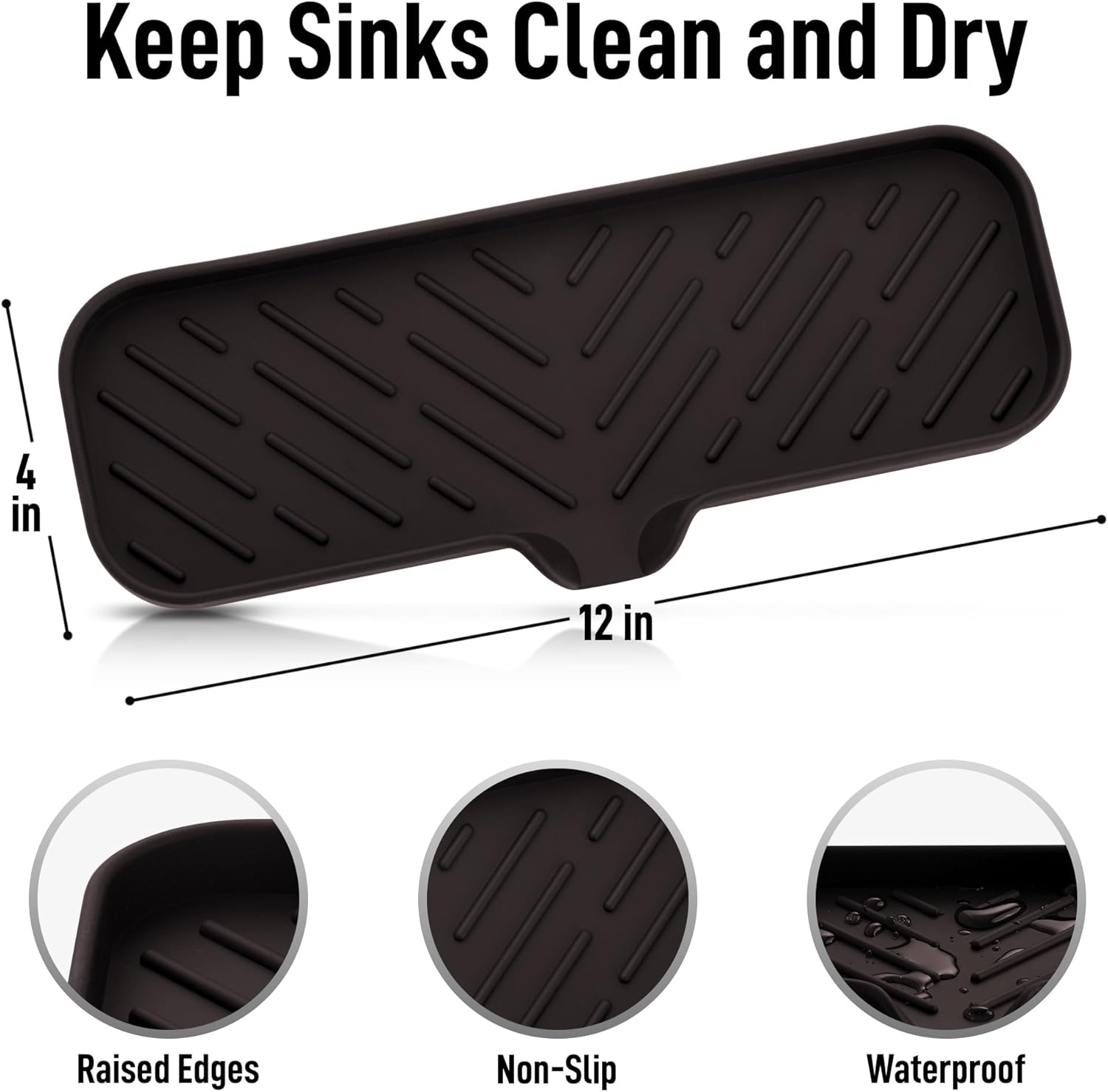 - MESS-FREE KITCHEN: Effortlessly keep your sink and countertops clean and organized with our large silicone sponge holder. Measuring 12 x 4 inches, this spacious tray is perfect for holding multiple cleaning sponges, scrub brushes, dish soap bottles, hand soap bars, silverware, and more. Its versatile size also makes it ideal for use in utility rooms, bathrooms, laundry areas, or on your vanity to store makeup and small accessories.