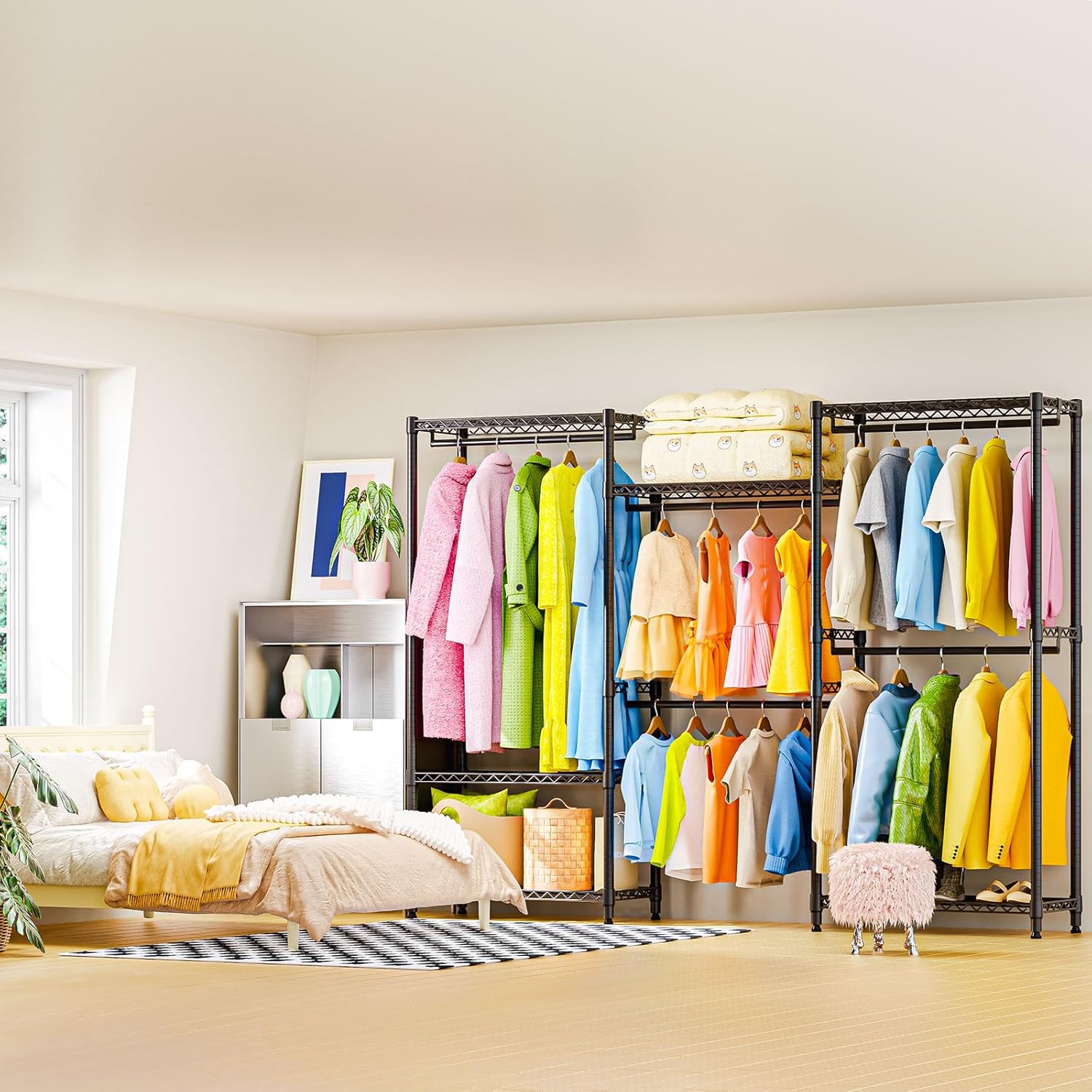 - Spacious and Adjustable Storage : Designed as a multi-functional storage solution, this heavy duty clothes rack includes a hanging rod, two sets of side hooks, and adjustable shelves, offering ample space for clothing, shoes, and accessories