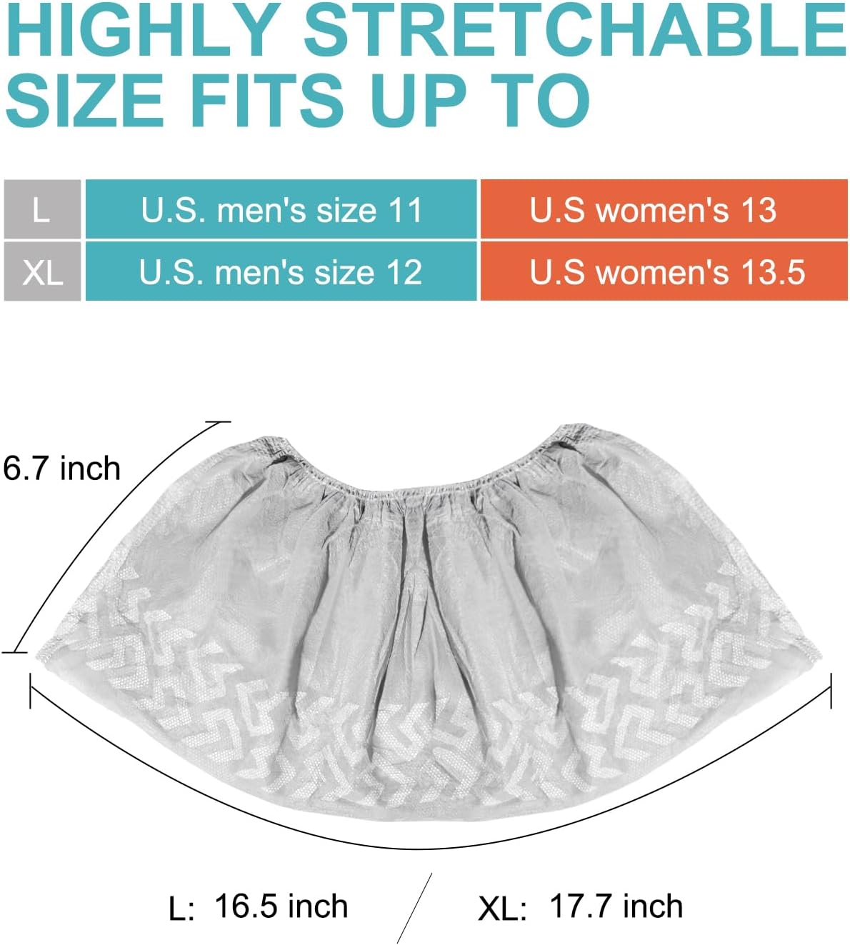 - 4) Stretchy Opening—Easy On, Stays On Elastic opening expands to slide over shoes quickly, then hugs in place without tearing or slipping off. Protects floors from dust, dirt, mud, pet hair, and debris.