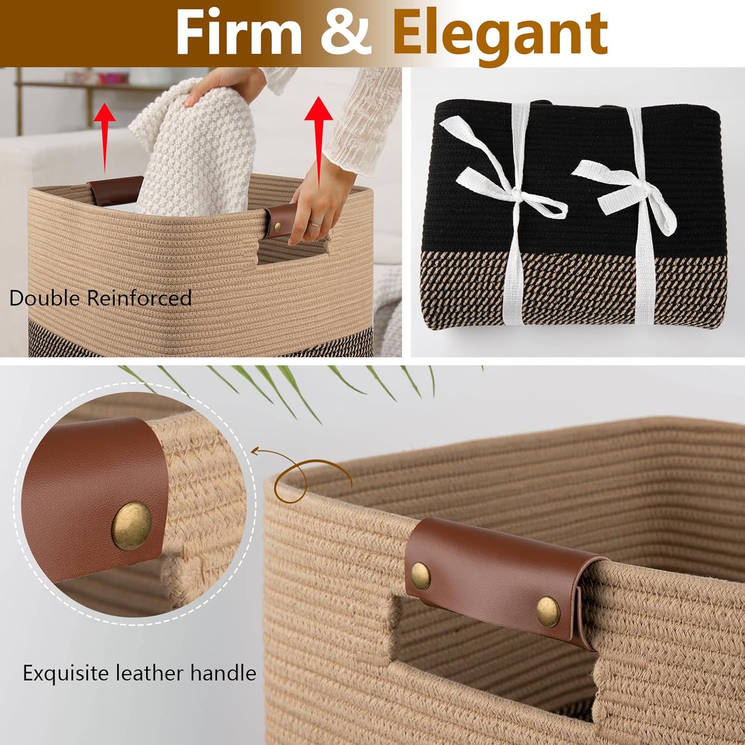 - Natural Handmade & Unique Design: The special hand-woven design makes the style of our blanket basket simpler, the classic color blend seamless with any room decor. The elegant leather handles not only take care of your hands but also add a distinctive highlight to our large baskets