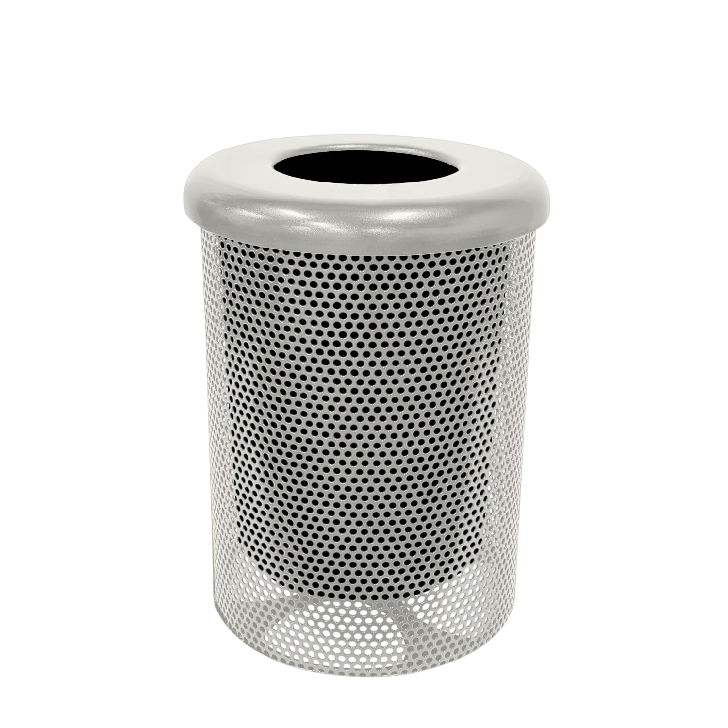 COATEDOUTDOORFURNITURE RFT-P-TXTGRY Heavy Duty Round Trash Receptacle with Flat Top, Liner Included, 32 Gallon, Textured Grey, Made in America
